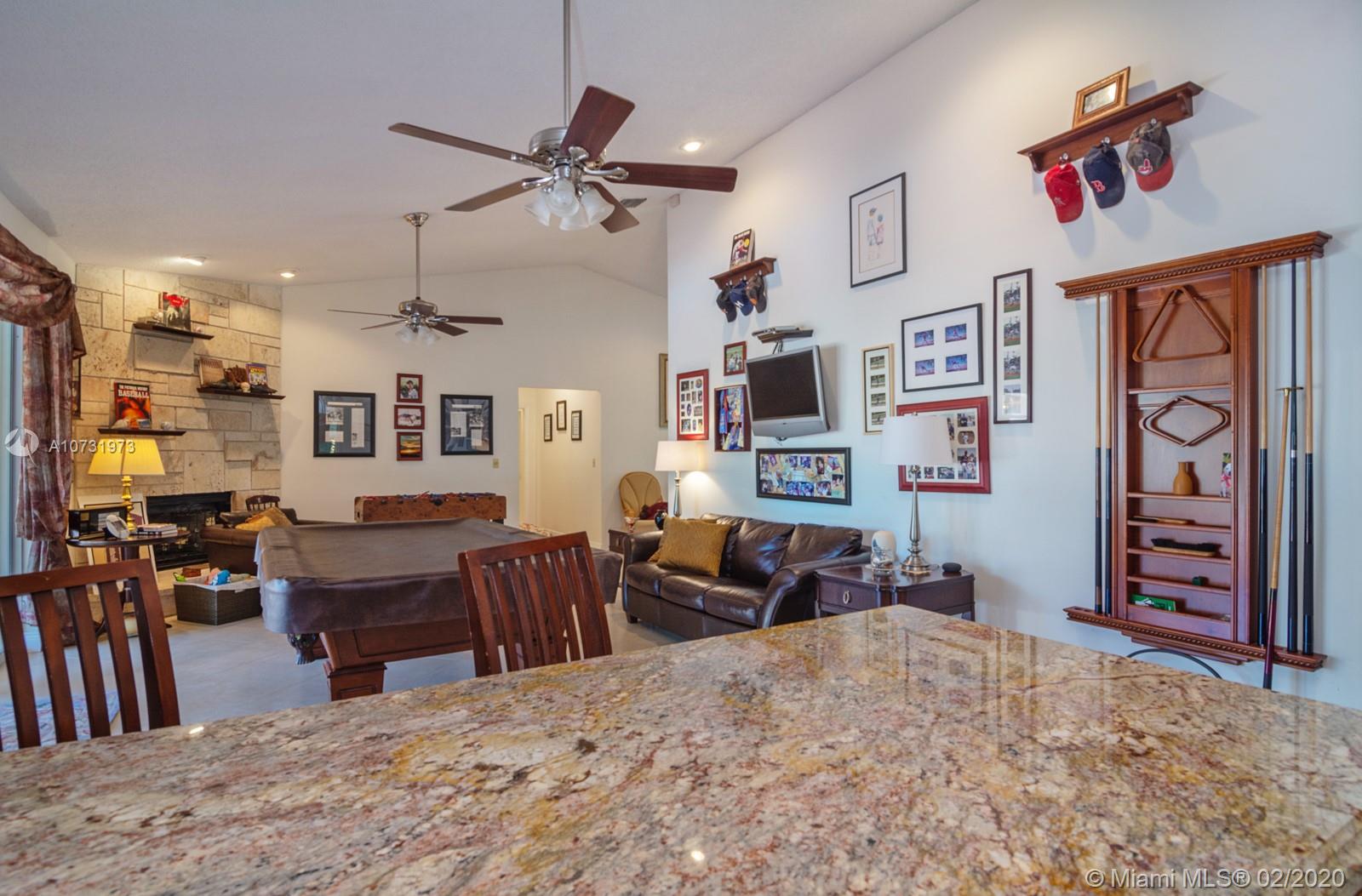 This beautiful home is situated on 1.08 acres of tropical paradise landscaping in the desirable neighborhood of Pine Tree Estates in Parkland. This spacious home has an open floor plan and impacted windows. The living side of the house has vaulted and high ceilings throughout with updated large ceramic tiles set on the diagonal and oak wood floors. All bedroom closets have custom wooden built-ins. Resort-style backyard living with extra large pool and spacious terracotta tile patio. Circular driveway in front with a side driveway leading to the over-sized three car garage.Family room has stone working fireplace with french doors.Custom made solid Cherry wood cabinets with granite counter tops and stainless steel appliances.Formal dining room has vaulted ceiling with custom crown molding.