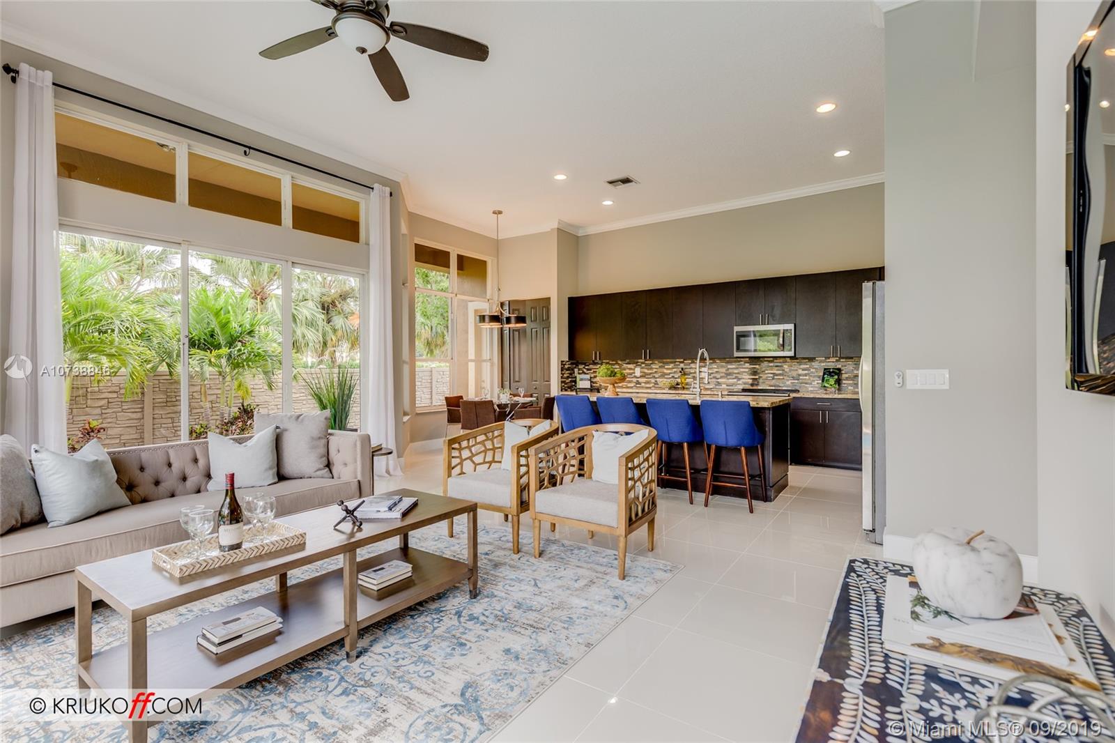 Stunning 4/2.5 pool home located in prestigious Mariner's Cove. This home features a beautiful kitchen with granite countertops and stainless steel appliances, crown molding, window treatments, elegant lighting throughout, fans in every room, spa bathrooms, wood floors, his and hers closets, an eat in kitchen and many extras. Full time security guard gate, laundry room, 2 car garage with additional space for storage, motorcycle, bikes. This home is a must see!