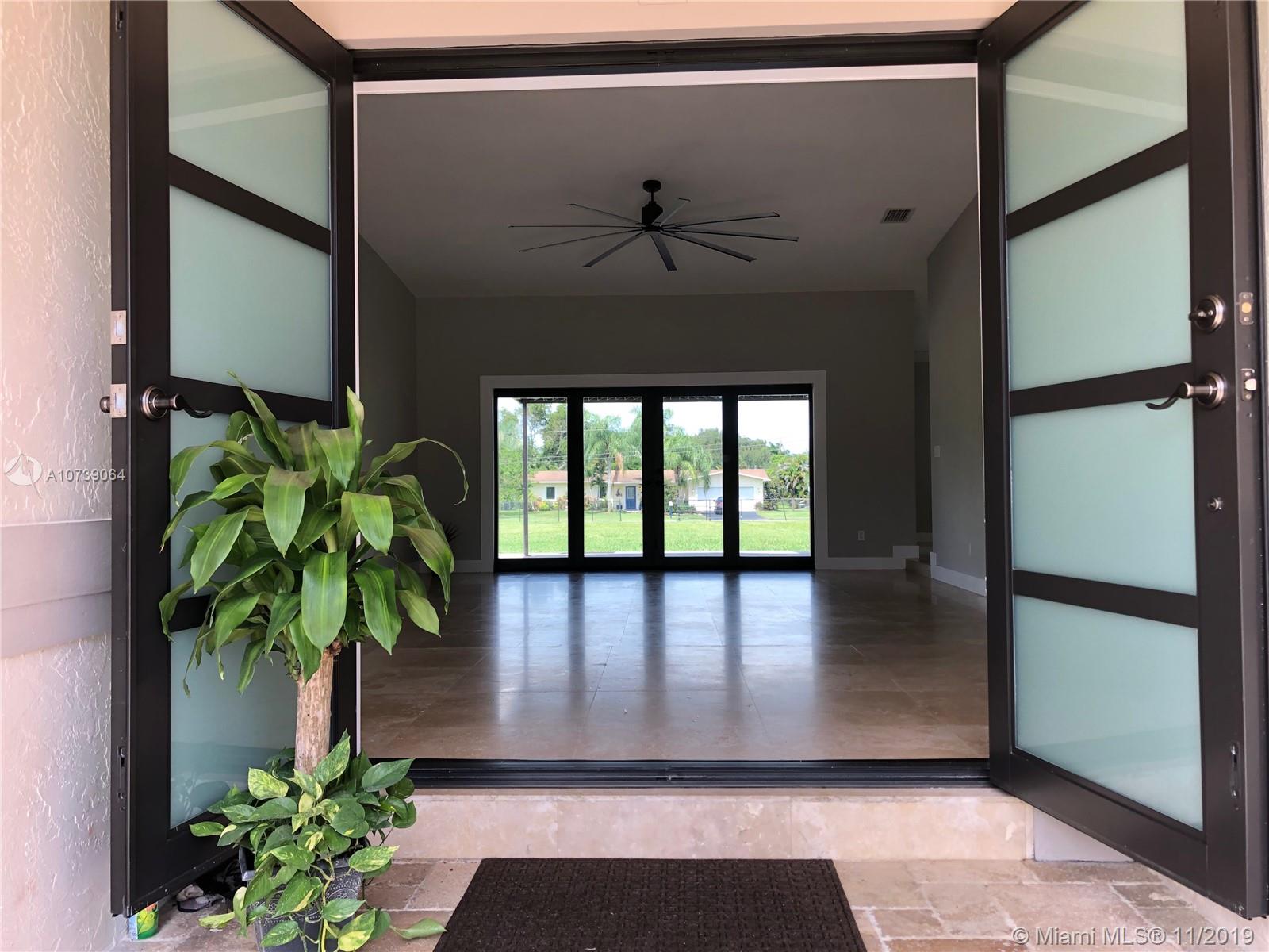 Located in SW Ranches an equestrian community with an excellent public school system, biker friendly, shaded boardwalks, minutes away from Vista View Park, just a well managed city with convenient infrastructure. The property offers: New Roof under a 10 years warranty; Eco hurricane impact resistant, sound reduction windows and doors ; New Pelican Water Carbon Filtration and water softener system; high celling and updated lighting. Flowless transition between greeting room, formal dinning room; open concept kitchen with spacious pantry and new appliances; laundry room with new washer and dryer; family room and private office. Property seats on a large lot adjacent to a dead end road with minimum car traffic. Lot rear access for convenience storage for family toys(Boats, RVS, Trailers etc