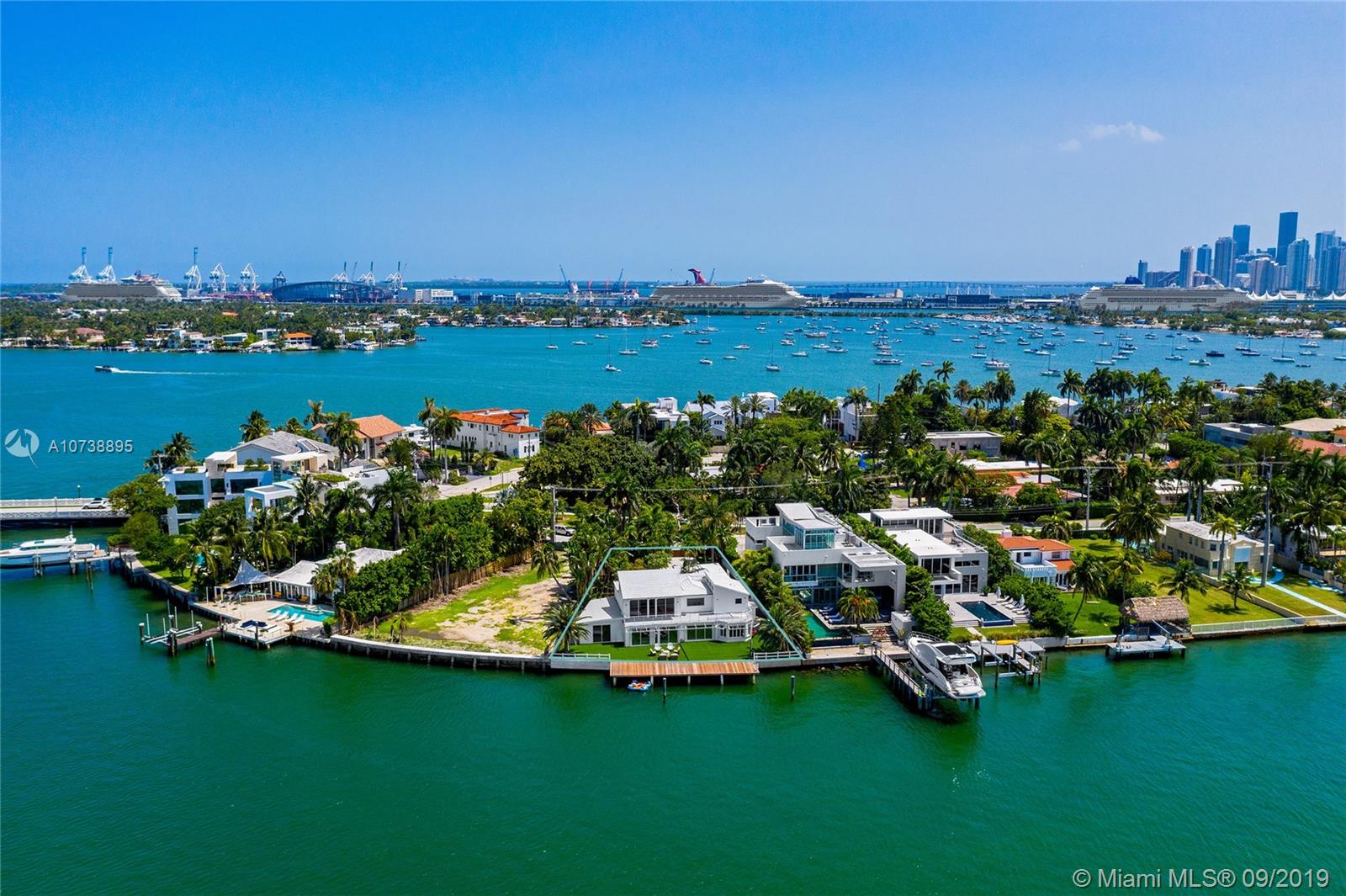 This amazing 2-story Bayfront home on San Marco Island, one of the Venetian Islands sits on an over-sized 13,382 SF lot w/approx. 105’ waterfront of open bay w/unobstructed views of the Miami & Miami Beach skylines. The 5BR/4+1BA home includes a separate 2BR/1BA guest apartment, spacious open living, family & dining room layout all w/stunning bay views. Gourmet kitchen sports top of the line appliances, blue pearl granite counter tops/backsplash & charming breakfast area. Bay-facing 2nd floor principal suite features a seating area, 18FT pitched wood beam ceiling & a private balcony that overlooks the open bay. Principal bath w/large walk-in glass rain shower, walk-in closet, cedar wood sauna & sunken spa tub. Expansive seating area for entertaining & 65’ Ipe wood dock.