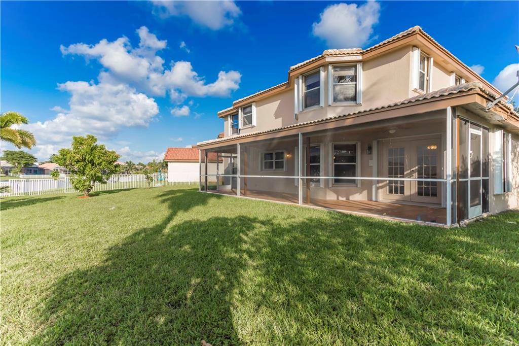 GORGEOUS 4/3 WITH LOFT/5TH BEDROOM, ONE BEDROOM ON THE LOWER LEVEL. HOME IS ON THE LAKE WITH A HUGE BACKYARD! THIS HOME FEATURES TILE FLOORING AND WOOD LAMINATE FLOORING THROUGHOUT. UPGRADED KITCHEN WITH GRANITE COUNTERTOPS, HARDWOOD CABINETRY AND STAINLESS STEEL APPLIANCES. BATHROOM DOWNSTAIRS IS COMPLETELY UPGRADED. SCREENED PATIO OVERLOOKING THE LAKE. HUGE BACKYARD WITH PLENTY OF ROOM FOR A POOL! HOME IS PROTECTED BY ACCORDION SHUTTERS. HOME WAS JUST PAINTED INSIDE.