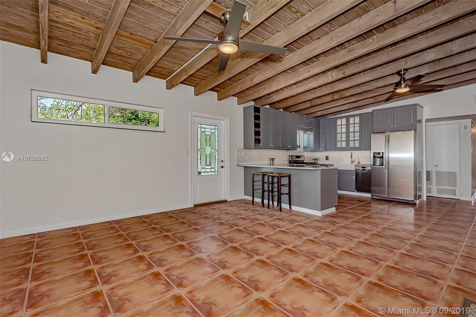 Enjoy a very open floor plan with gorgeous wood beam ceilings and charm galore! Home updated in 2016 with NEW Hurricane impact windows, NEW roof, and A/C. In 2018 the Kitchen was Updated with gorgeous extra deep and high cabinets. The Heavenly Kitchen has newer stainless steel appliances, quartz countertops, sumptuous farmhouse porcelain sink, and subway tiles. This Tropical Oasis boasts a fully fenced yard with lush and exotic landscaping. Spend evenings outside by the backyard surrounded by gorgeous trees and plants. Location, Location, Location! Mere minutes from the Turnpike, Fort Lauderdale Airport, 595, I-95, and downtown Fort Lauderdale Only 6 miles from Fort Lauderdale Beach. No Flood Ins required, No HOA, no Zero Lot Lines, bring your boat or RV, and enjoy your freedom!