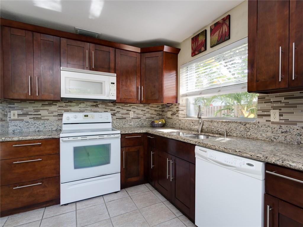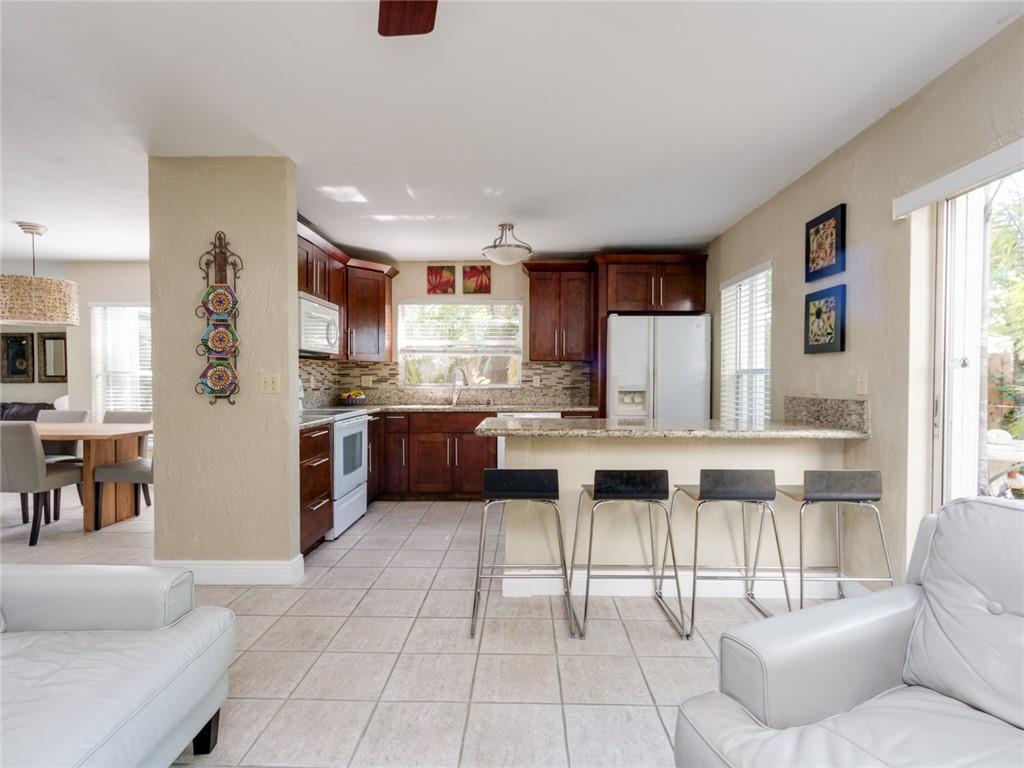 This is a one of a kind home. Nestled in the heart of IVANHOE. The home has been professionally painted inside and out. As you enter the home you find how light and bright it is with over 22 windows and storm shutters for all. The downstairs is all tile floors large kitchen with wood cabinets and granite counters that can fit 4 bar stools that overlooks your large family room. All 3 bathrooms have been remodeled. Formal living and dinning room. Lots of storage. You have a gorgeous wood stair floors leading up stairs and on the floor going to the bedrooms. Large master suite with sitting area. Your large paradise backyard is surrounded with tropical trees and fruit trees also brand new enclosed back yard with Cedar wood fencing. BONUS RM COULD B UR 4 BDRM OR OFFICE. New A/C unit