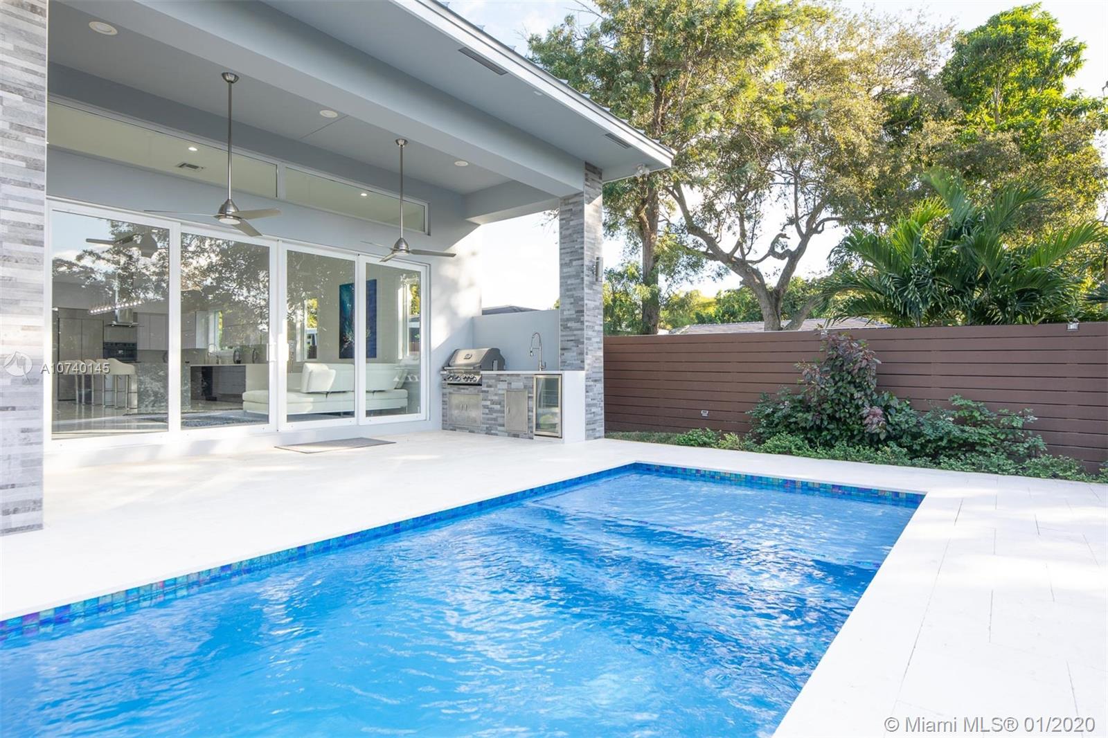 Brand New 2019 Luxury Construction 4BR/3BA, 1 Story House in Victoria Park. Open floor plan with 12' ceilings in main areas. Modern Design, two tone high end gloss European cabinets, Professional Chef’s kitchen designed for entertainment, gas stove w/upscale appliances and 14 Ft Quartzite island with seating for 8. Custom closets in all bedrooms, each with 5 drawers and built to ceiling. Master has two walk in closets, European bath cabinetry w/spa like whirlpool tub w/very large shower. European Porcelain Floors. Hurricane impact doors and windows, gas tankless water heater. Built in gas barbecue and kitchen under patio roof w/upgraded pool and limestone patio area, lushful landscaping and fenced yard. Located just blocks from Las Olas, Beach, Downtown, Fort Lauderdale and Int’l Airport.