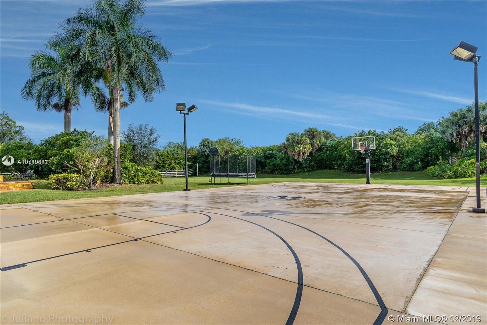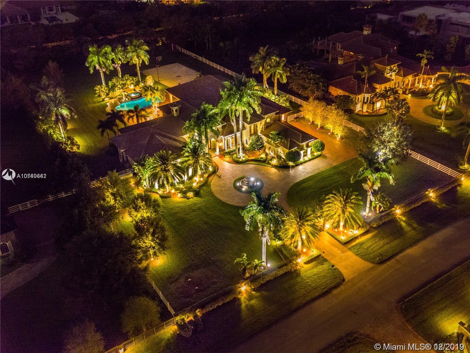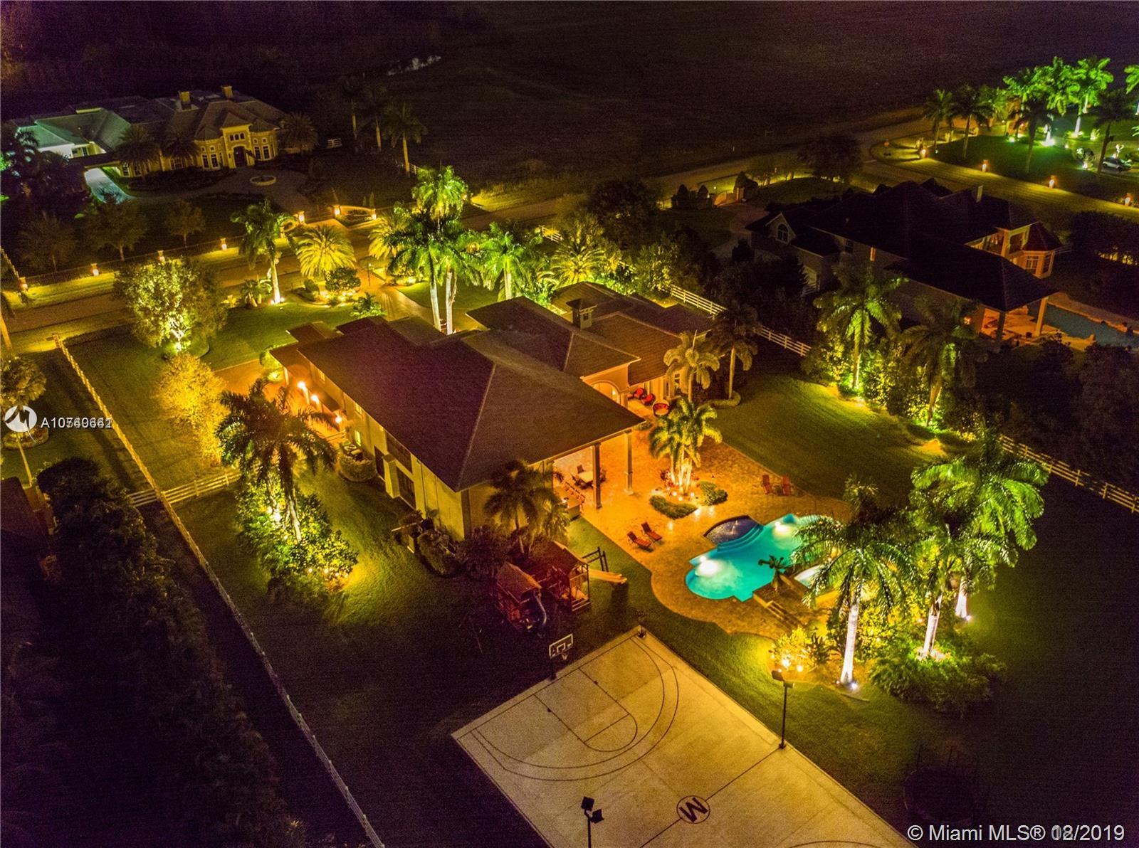 Landmark Ranch Estates the most prestigious community in South Florida!! This custom built home has it all with over 4.5 million in upgrades. Featuring 6 bedrooms, separate guest house, office, theater room, game room, gym, and sauna. Sitting on over 2.34 acres enjoy your resort style backyard with a beautiful heated pool, summer kitchen, built in speakers throughout the entire home, outdoor fireplace, and full size basketball court with lighting! Crestron controlled Smart Home. Top of the line Viking kitchen appliances with a 6 burner Gas Range and subzero refrigerator! Generator with two 1,000 gallon tanks perfect for any storm! The exterior's 300+ LED lights look magnificent in the night time sky. 5 car garage with a 7,000 sq ft driveway to fit all your cars! Must see video walkthrough!
