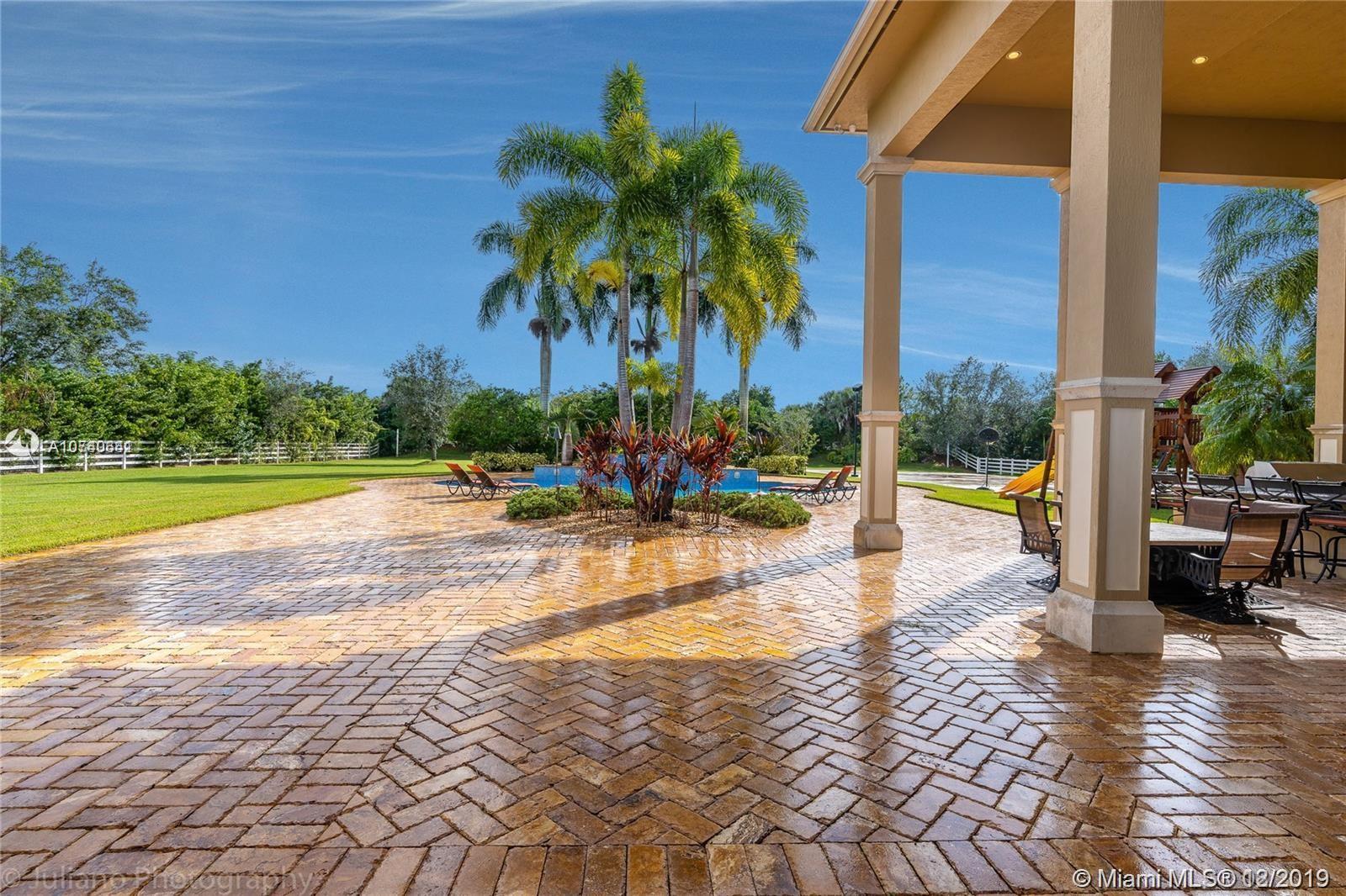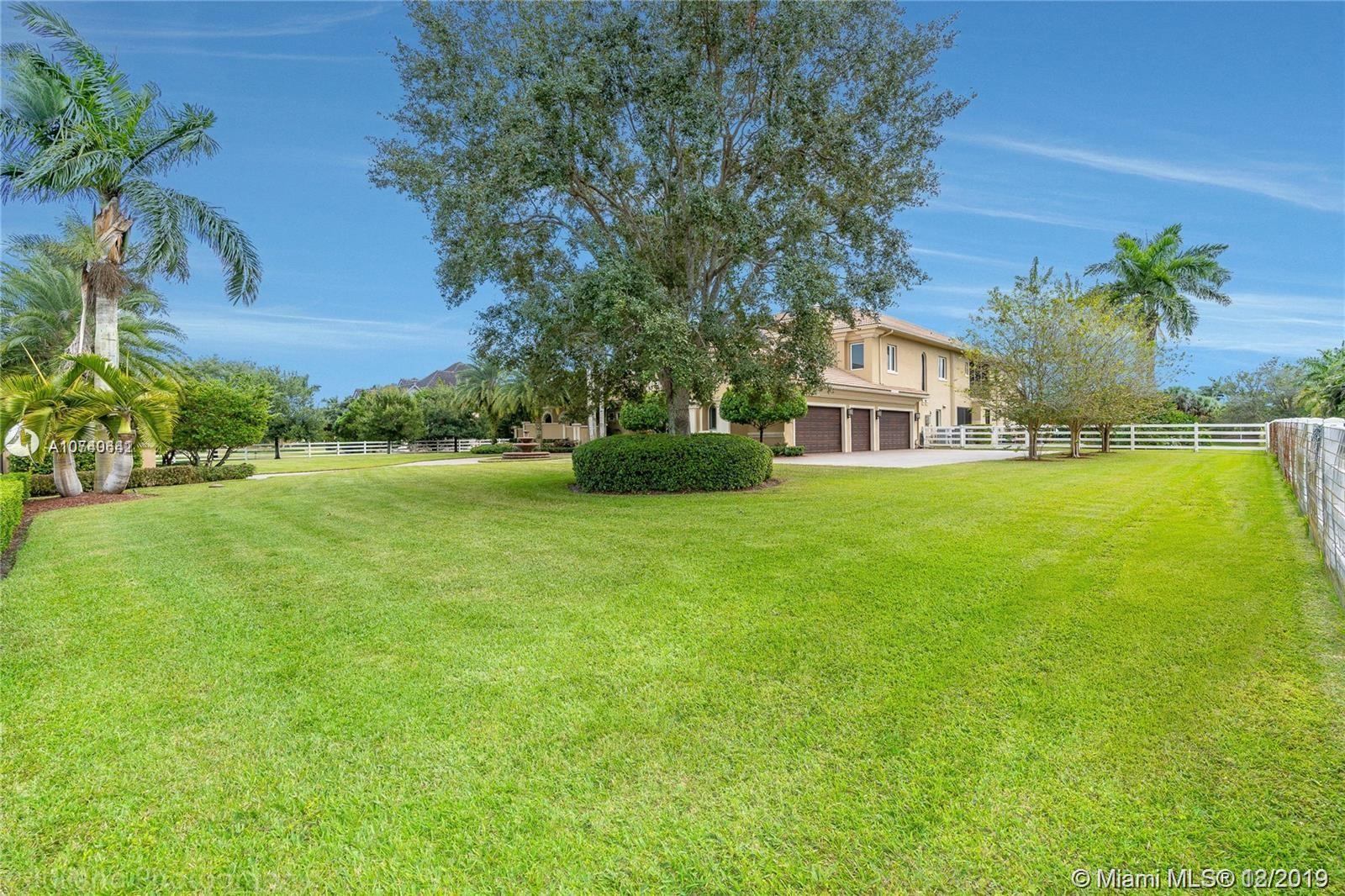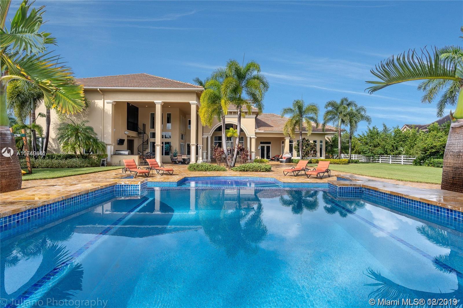 Landmark Ranch Estates the most prestigious community in South Florida!! This custom built home has it all with over 4.5 million in upgrades. Featuring 6 bedrooms, separate guest house, office, theater room, game room, gym, and sauna. Sitting on over 2.34 acres enjoy your resort style backyard with a beautiful heated pool, summer kitchen, built in speakers throughout the entire home, outdoor fireplace, and full size basketball court with lighting! Crestron controlled Smart Home. Top of the line Viking kitchen appliances with a 6 burner Gas Range and subzero refrigerator! Generator with two 1,000 gallon tanks perfect for any storm! The exterior's 300+ LED lights look magnificent in the night time sky. 5 car garage with a 7,000 sq ft driveway to fit all your cars! Must see video walkthrough!