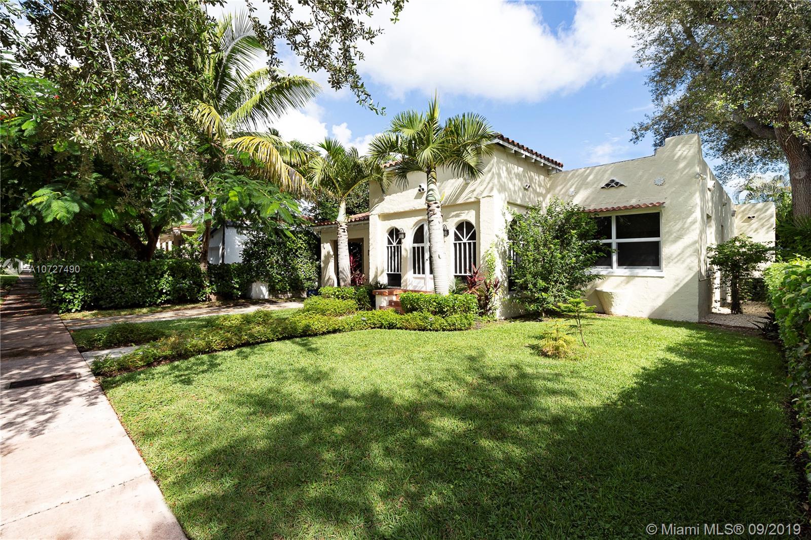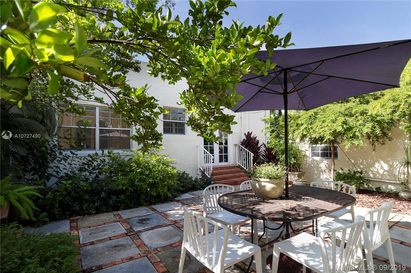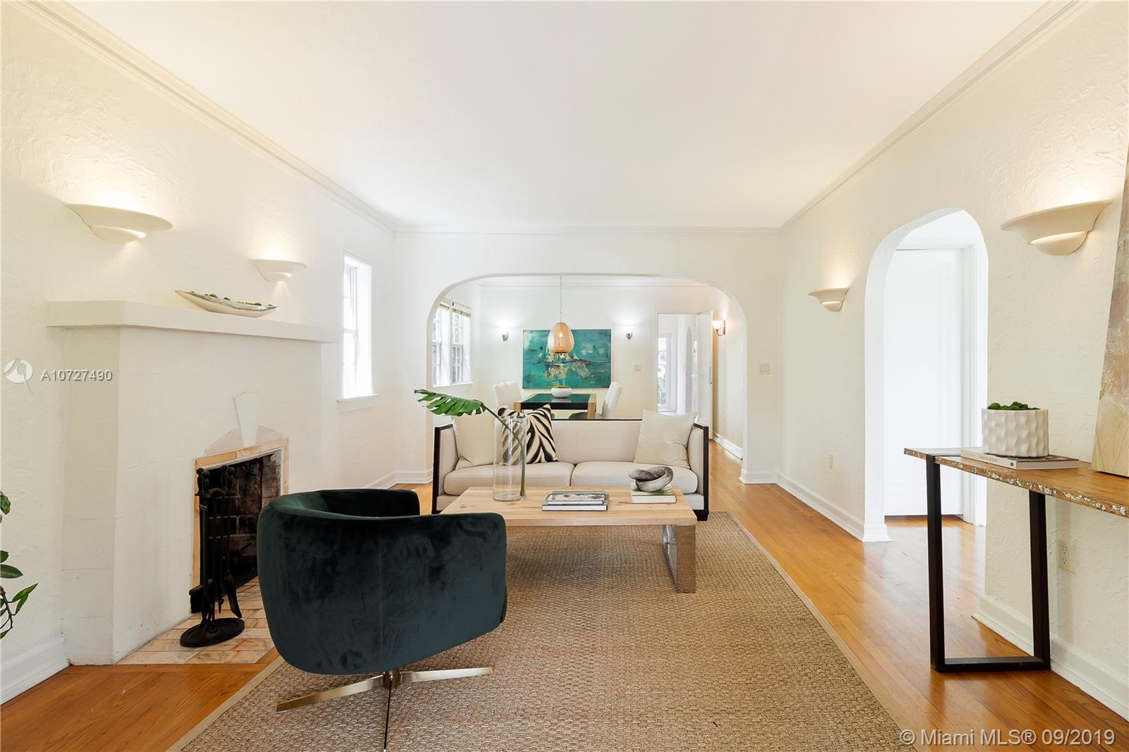 A timeless Old Spanish sits on a charming and quintessential Coral Gables street and is now available for a new homeowner. Merely .2 of a mile from the famed Miracle Mile, everything from restaurants, shopping, book stores & cocktails alike are at your beck and call. The traditional screened in front porch sets the tone for the home. Original wood floors and understated fireplace anchor the living spaces. The main house has 2 bedrooms and 2 full baths with a sitting room inside the master. Spacious kitchen leads to the sweet courtyard style backyard. A true guest house with full bathroom and kitchenette is ready for your visitors to enjoy, or for an easy rental income opportunity. Make yourself at home here and find yourself at the center of Coral Gables living. A Very Special Home.