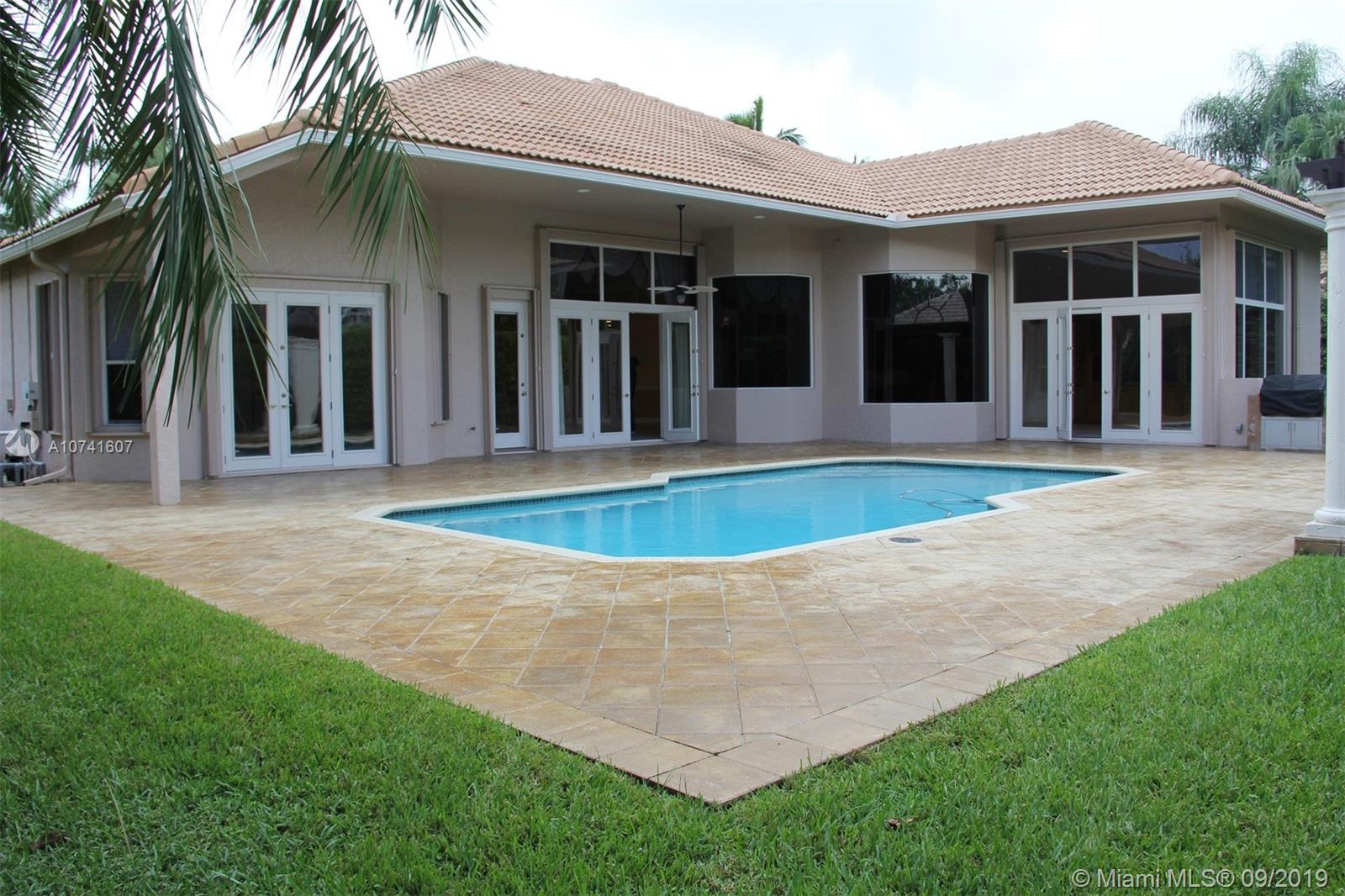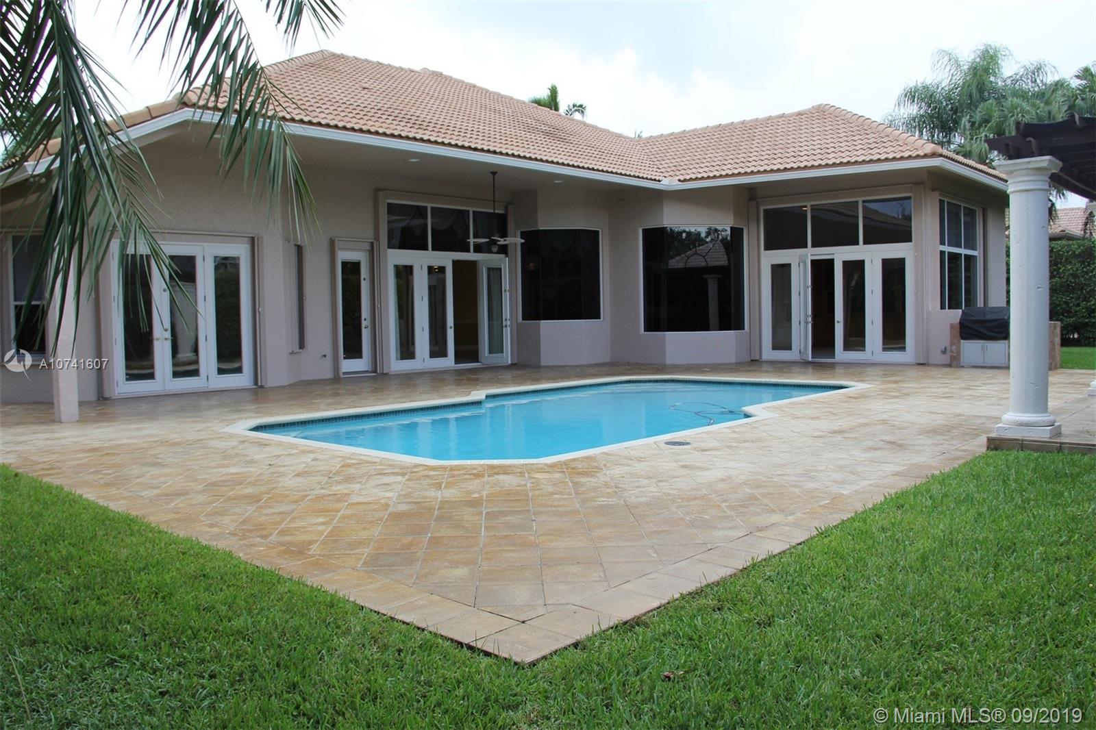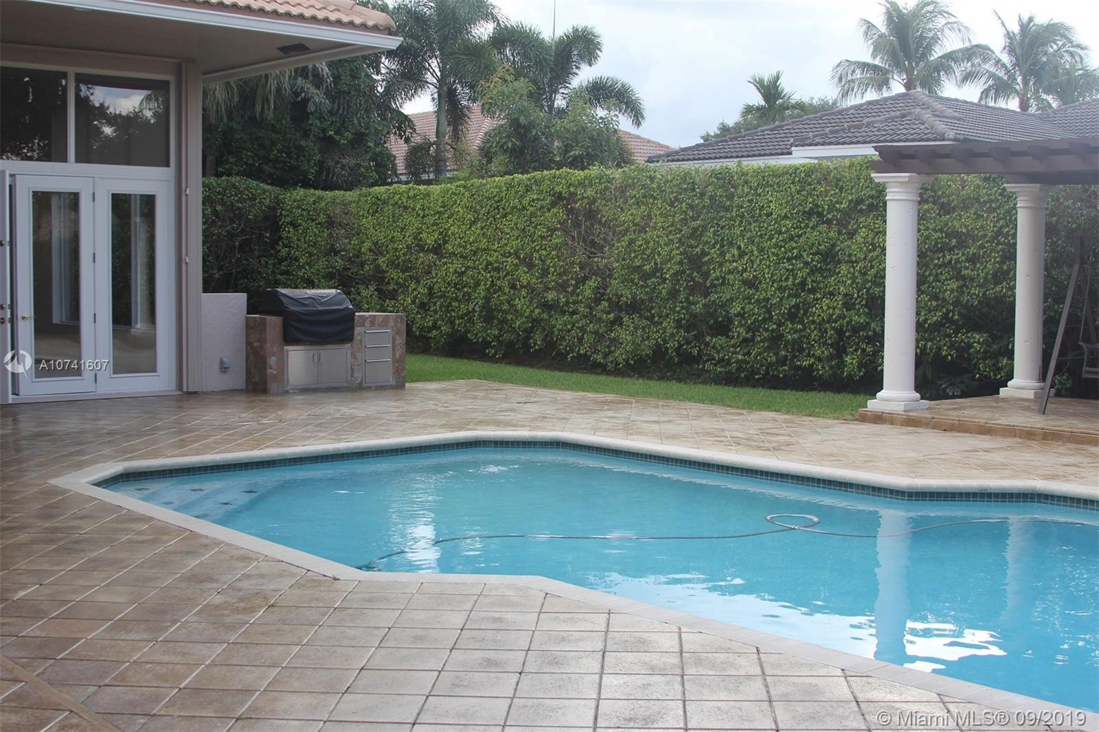 Beautiful Home a Must See!! 4 bedrooms, 4 bathrooms & Den/office. This home have all the imaginable upgrades including crown molding, tray ceiling in master, real wood floor in bedrooms, high quality built in entertainment unit & office furniture, wet bar w/ wine refrigerator, gorgeous floors, full guest/pool bathroom, all recessed lighting, Large Master, beautiful gourmet kitchen w/ high end cabinetry, SS appliances & much more. 5th bedroom can be used as a den/office. 3 a/c units, home is protected with accordion shutters. Open concept floor plan with soaring ceilings and some windows with custom designed windows treatments provide abundant natural lighting throughout. A tropical landscaped large patio w/ pool & outdoor built in Grill & Pergola perfect for entertaining family & friends.