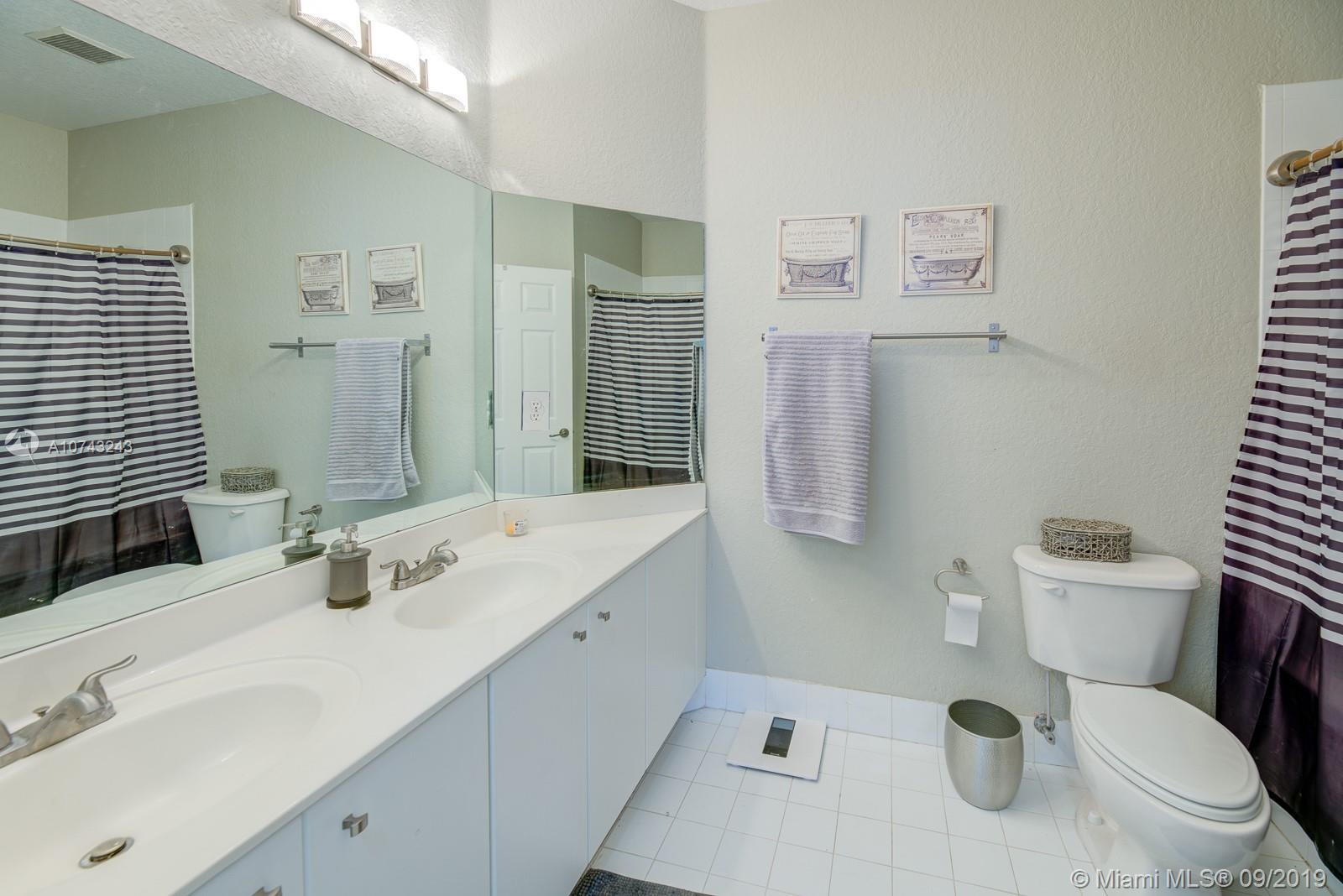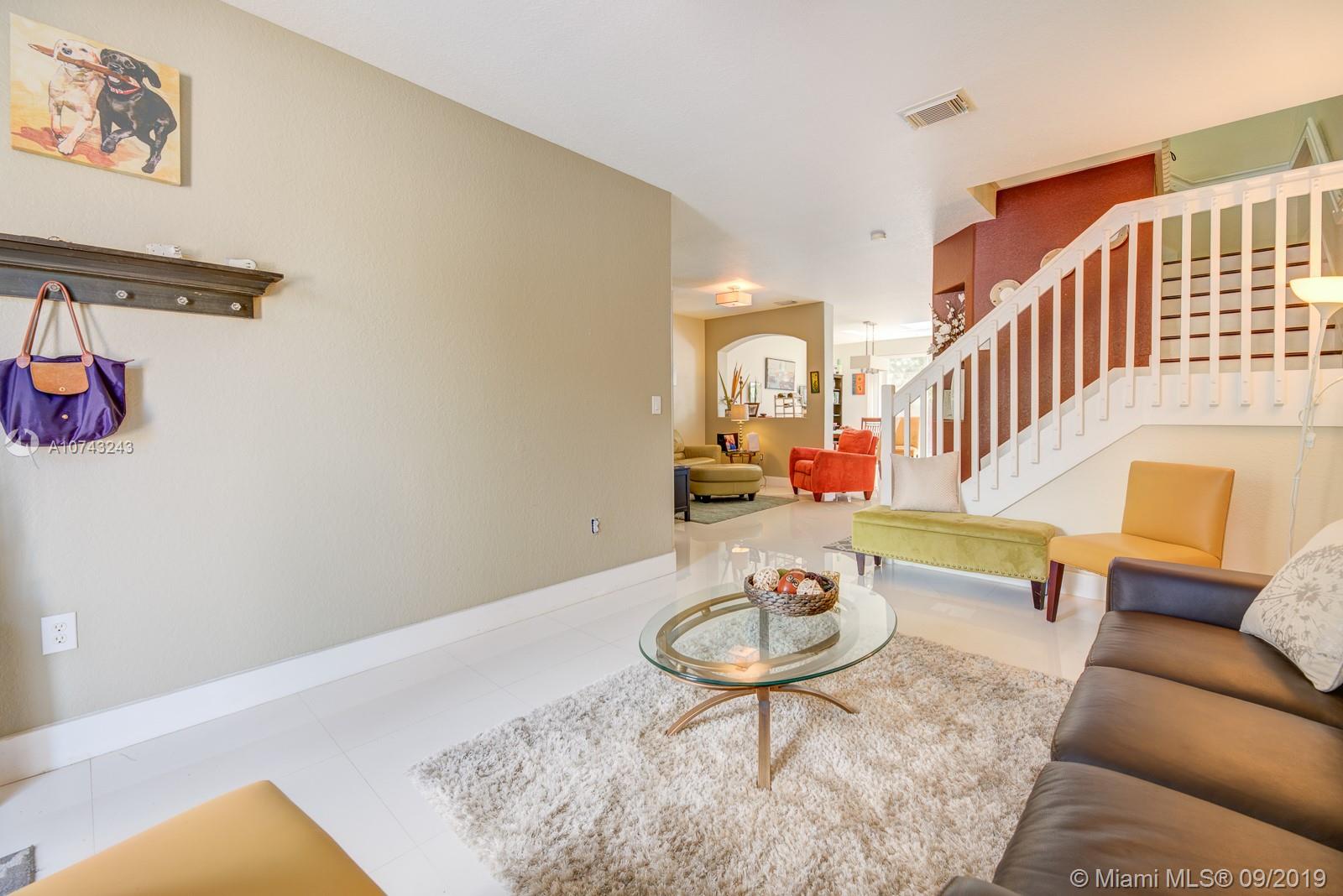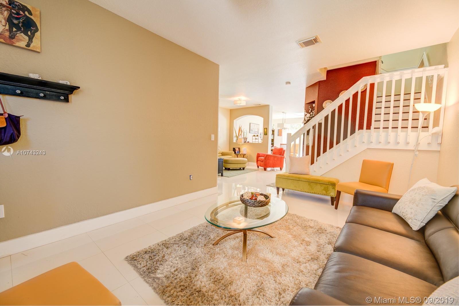 This modern 2006 two story Mediterranean style town home with garage in the heart of Doral has everything you're looking for. Sparkling white porcelain floors throughout the living area give the home its wide open airy feel and the exquisite cafe colored wood floors in the bedrooms make a beautifully stunning contrast. Modern accents and fixtures decorate the entire interior of the home giving it a unique look along with its classic Spanish/Mediterranean exterior. Great for entertaining you'll enjoy its formal living room with adjacent Florida room making it great for receiving guests. Its nearly 1900sf of living space encompasses 4 bedrooms and 2.5 baths all updated with pristine light fixtures, sinks and cabinetry. A large open kitchen overlooking the dining area.