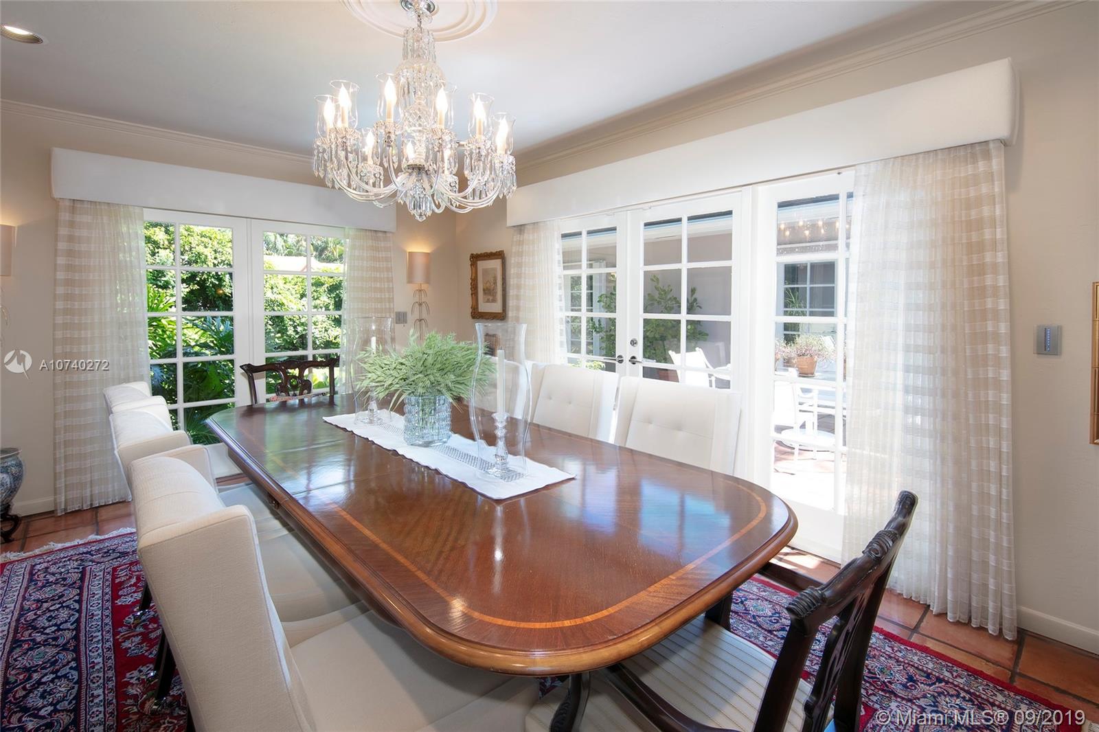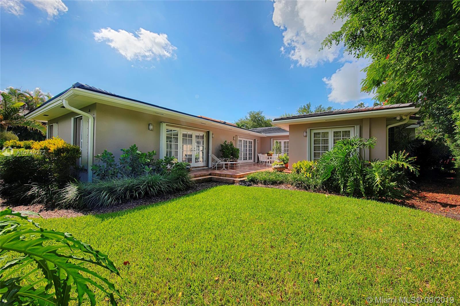 Home Sweet Home! Mid-century South Gables home has incredible charm w/natural light, crown molding, wood floors and French terracotta. Sits on 8,750 SF lot in a quiet tree-lined street w/2,669 adj sf containing a split floor plan of 3 beds/3 baths. Kitchen w/gas range & SS appliances. Step out through French doors to patio. Spacious master wing addition w/marble flrs overlooks the patio. Master bath boasts walk-in his/her closets, dual vanities, shower and separate tub. Brick driveway leads to 2 car garage. Electrical has been updated w/LED lights in most rooms. 2 bathrooms were tastefully renovated w/ modern design in 2016. Custom built-ins & good storage space. Shutters. Central location close to UM & Sunset Place. New roof. New septic tank and drain.