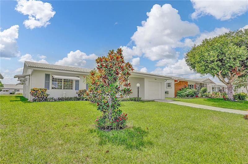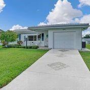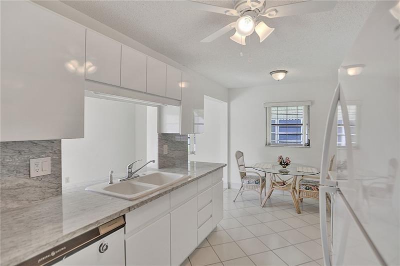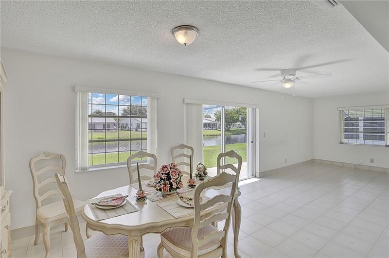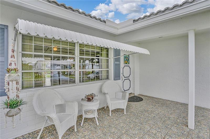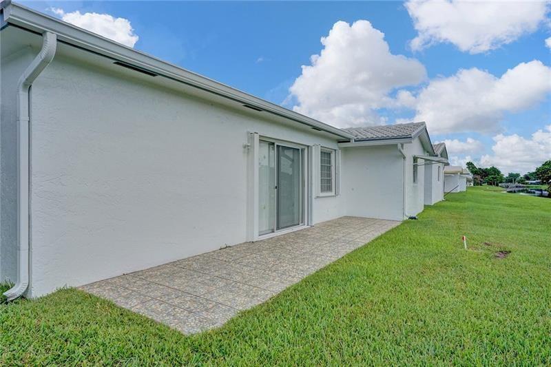 Beautifully maintained, completely renovated bathrooms and kitchen situated on a wide waterfront lot. This Admiral 2 bedroom/2 bathroom model includes: freshly painted interiors and garage, open floorplan, extra closets, light granite countertops and backsplash, brand new ceiling fans and lighting, neutral pristine tile flooring, and new bedroom carpets. The exterior contains storm awnings, accordion shutters, extra security in all windows, gutters along front and back, an oversized designer driveway, patios with non-skid stone tile, and well groomed landscaping. This move in ready home is located on a desirable quiet street. The homeowner demonstrates meticulous attention to detail both inside and outside.