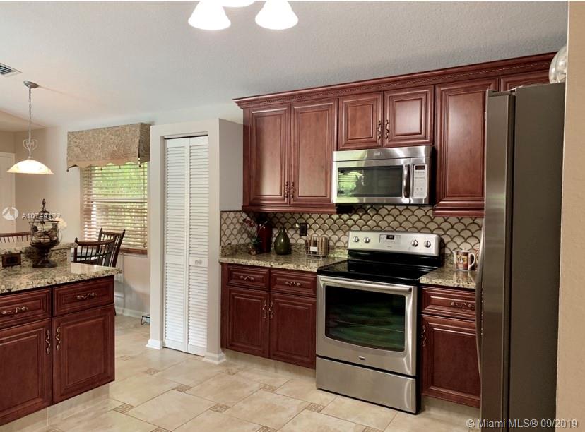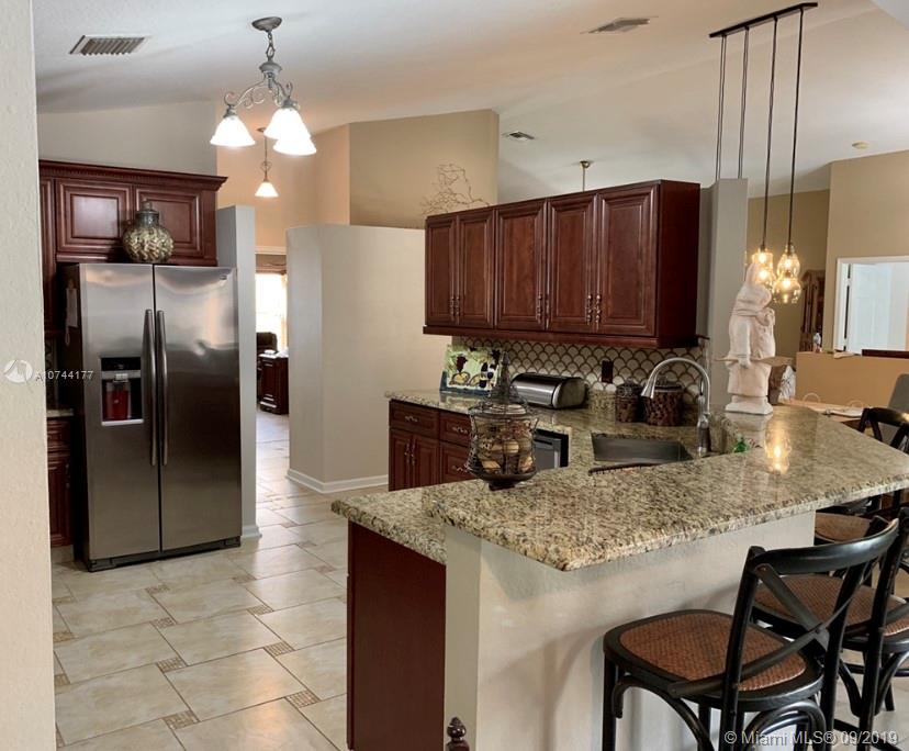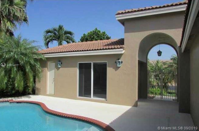 Beautiful ALHAMBRA Community in Pembroke Pines, This Rare to find 4/3 Builder's Courtyard home features a separate bedroom and bath guest quarters with a beautiful freeform pool in the courtyard. Incredible spacious floor plan features spacious living room, dining, and huge family room. Brand new high end custom kitchen/ mahogany wood cabinetry. Custom matching granite countertops/back splash. Stainless appliances. Tile flooring with Onyx inlays and crown molding throughout entire home. Hurricane Shutters, Less than 2 years old Pool Pump and jacuzzi pump just installed. New 5 ton AC system. New Hot water tank just installed Yard backs to Natural preserve assuring no rear neighbors and max privacy. Home priced to sell. New Kitchen, Pool diamond bright. Great Schools in the area.