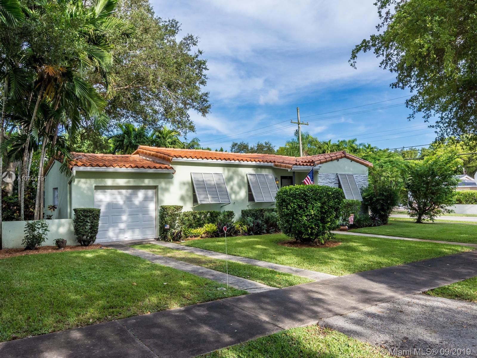 This home is the perfect Coral Gables pied-a- terre and is superbly located on a rare 7,500 Sq.Ft. corner lot on a tranquil, tree-lined street. The wood-floor, 1-car garage and the Florida room are among the assets offered by this property. When the kitchen and the bathroom are redone to your taste, this property will be a true gem. Yes, it is embedded in nature, yet so close to downtown Coral Gables, downtown Miami and its airport.