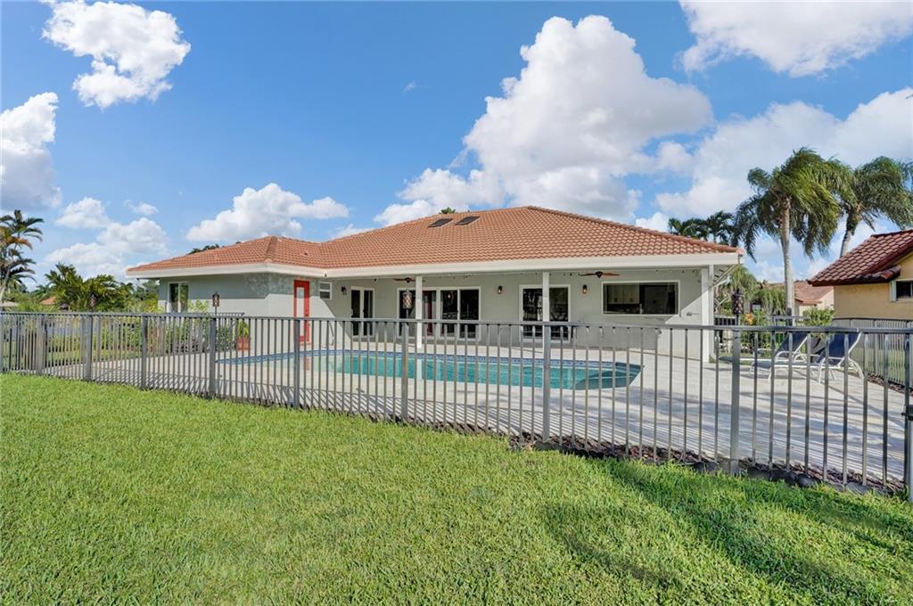 Walking into this 3 Bedroom 2.5 Bath Waterfront Golf Course View you wont be disappointed! NEW Kitchen, Bathrooms, IMPACT Windows and Doors, and a New Heated Saltwater Pool. Open floor plan with soft close kitchen drawers, new black stainless steel appliances, quartz counter tops, additional room for an office, walk in pantry, laundry room, master bedroom walk in closet, Cabana Bath and plenty of room to entertain. Guarded Gate Entry. Only $1000 1x fee for the HOA at closing. HOA quarterly maintenance covers Security, internet and fiber optics tv by hotwire and general maintenance of the subdivision!