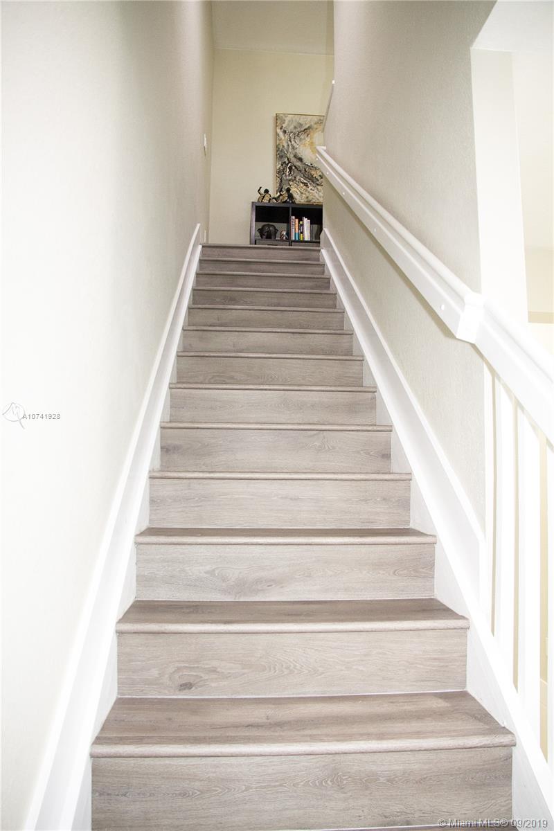 Beautiful three level fully upgraded with modern accents Townhouse, located in a gated community with controlled entrances and security. Bright and spacious Living Room, open kitchen with wood cabinetry, granite countertops and daily breakfast nook that can be used as a home office station. New and recently installed modern design doors. High Impact Windows and Doors. Tile and contemporary laminated flooring. This gem features 3 bedrooms, 3.5 bathrooms and 2 cars garage with plenty of common parking spaces. Community pool, fitness center, party room, children's playground and beautiful jogging paths around the lake.
