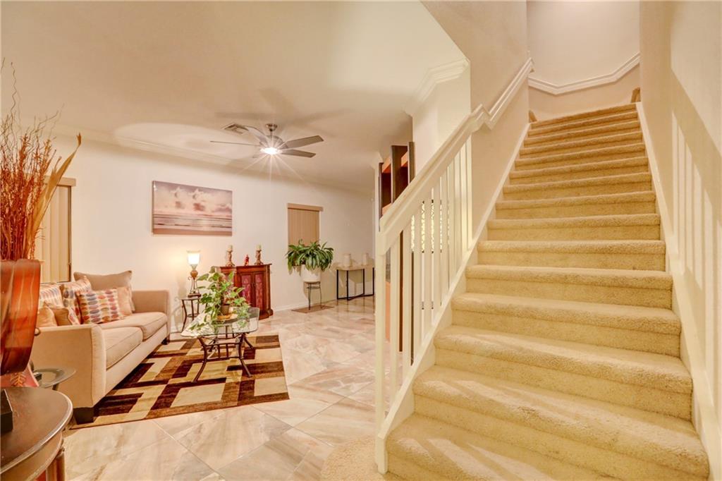 Very spacious 4 bedroom 3 full bath home in gated community! One full bathroom and bedroom on ground floor, all others on second floor. Updating includes; impact windows & electric roll down shutters, appliances, air conditioning, water heater, flooring and completely renovated guest bathroom! Low maintenance fees! Full 2 car garage! Paver driveway and entry way. Covered patio area in back yard. Balconies on front and rear of home! Laundry room upstairs!! Huge loft area family room with built in office area. This home and neighborhood is well suited for family and friends. Walk to community pool, clubhouse and tennis courts. Conveniently located with easy access to all major roadways, restaurants and shopping. Viscaya, Lakeview West!