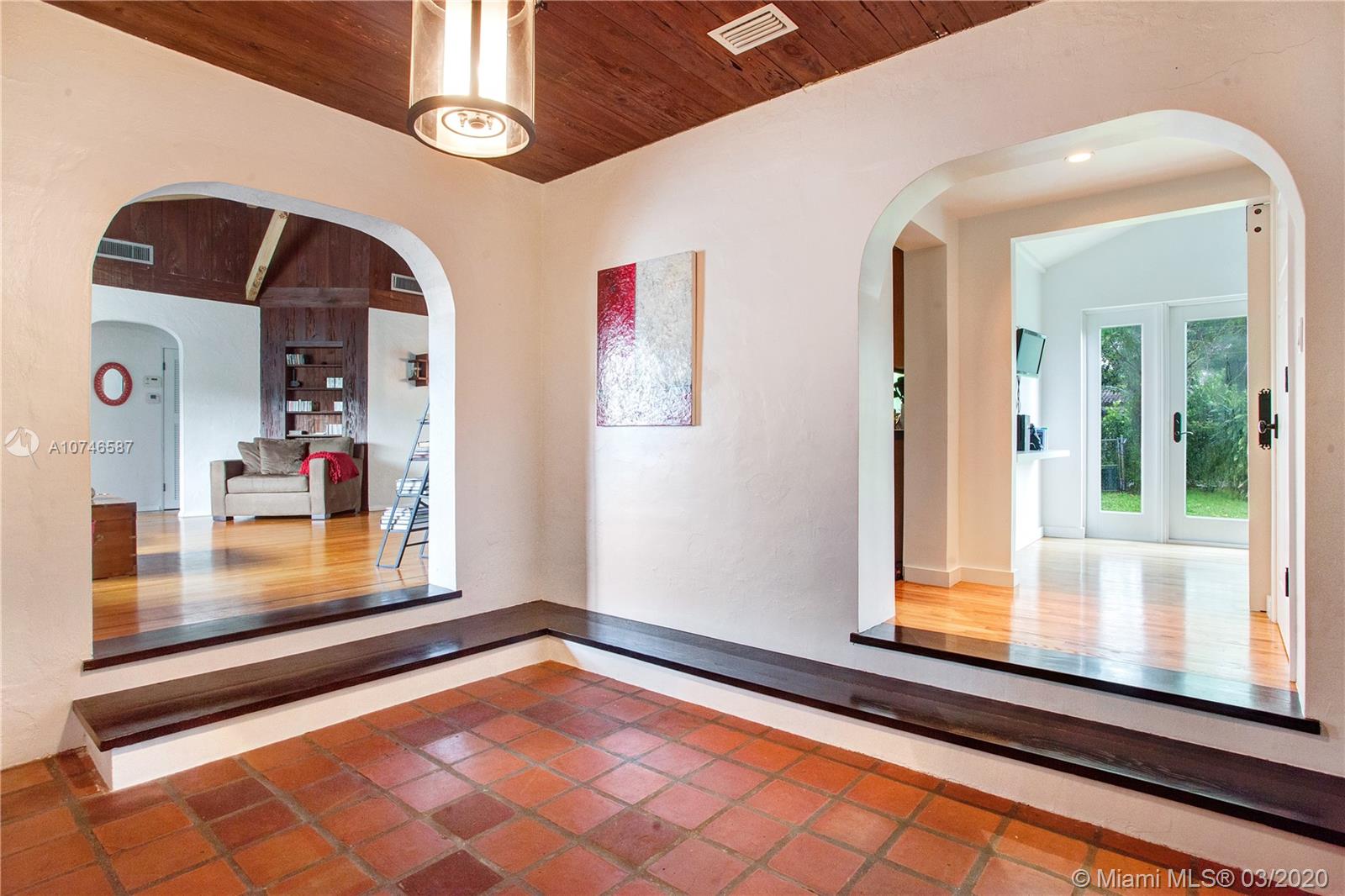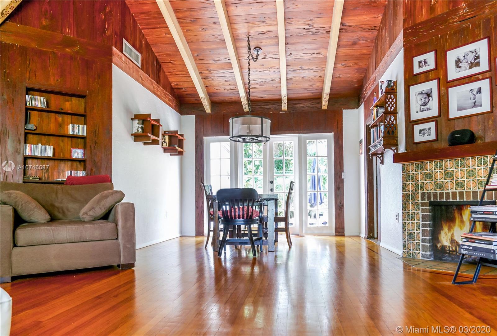 Lovely Mediterranean Miami Shores home loaded with tons of character. Step into the house and discover beautiful beamed vaulted ceilings and a wood burning fireplace in the main living area. The home offers an artistic feel with exposed wood walls, ceilings and floors through out. Master bedroom with large open walk in closet and ensuite bathroom. A convenient foyer entry way to unload after a hard day of work. Large backyard with room for a pool. Perfectly situated two blocks away from Publix and near the Miami Shores community and recreational center with easy access to Biscayne Blvd. A combination of impact windows and shutters protects the entire home. Showing restrictions due to COVID-19- You Tube video: https://youtu.be/64HDCaredNk