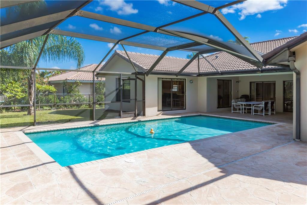 Great single-family home in Cypress Glen. Property features 4 bedrooms 2 baths oversized pool & enclosed screened area. As you enter you have a large formal living room with high ceilings and a wet bar great for entertainment. Unique floor plan flows around the pool area giving you lots of natural light from multiple sliding doors surrounding the family room, kitchen, living room & master bedroom all with views of the pool. Separating the other 3 bedrooms towards the front of the home with their private bathroom & deep closets. Open eat-in-kitchen leads into the family room with newer wood floors & high ceilings. Dining room is setup to be used as a convertible room, Den or office. S-tile Roof. Laundry room. Hurricane garage door & Fence area for pets.