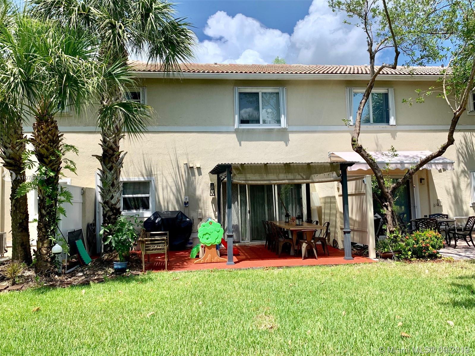BEAUTIFUL AND FULLY RENOVATED TOWNHOUSE 3 BED 2.5 BATH WITH AN AMAZING BACK YARD WITH HUGE COMMUNITY SPACE AND GREAT LAKE VIEW FOR KIDS AN FAMILY ENJOYMENT. NICE GAZEBO, GORGEOUS KITCHEN WITH A BEAUTIFUL BATHROOMS. TILE 1ST FLOOR WALL TO WALL. LAMINATED WOOD FLOOR IN STAIRS AND 2ND FLOOR. TASTEFULLY DECORATED. FURNITURE CAN BE NEGOTIABLE AS WELL. 2 PARKING SPACE IN FRONT OF THE PROPERTY WITH 1 CAR GARAGE FOR PRIVATE AND NICE SPACE. FANTASTIC COMMUNITY WITH 4 POOLS, KID PLAY AND POOL AREA, SEPARATE POOL FOR ADULTS, TENNIS COURT, BARBECUE AREAS, BASKETBALL COURTS, GYM AND EXERCISE ROOM, MANAGEMENT ON SITE, 24/7 GUARD GATED COMMUNITY. 4 SEPARATE ENTRANCES. ***EVERYTHING IS NEW***. EASY ACCESS TO HIGHWAYS AND GREAT SCHOOLS. ****NO CONTINGENT TO APPRAISED VALUE****