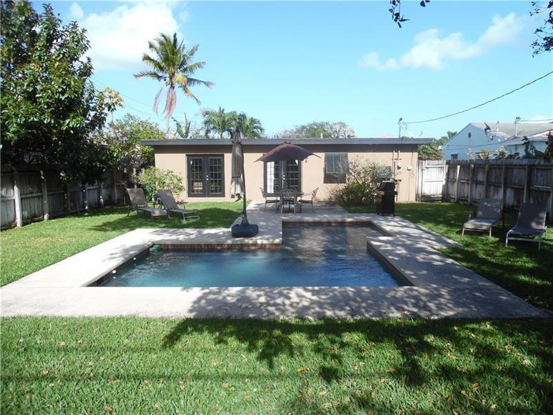 Stylish 2 Bedroom 1 Bath Pool Home located in S. Middle River. Home boasts an open floor plan w/split bedroom layout. Fully updated kitchen & Bath. Concrete floors throughout. Spacious private back yard perfect for entertaining. Large Patio area for tanning by the specially designed geometric swimming /wading pool w/ submerged bench for chest height relaxing while in the pool. Fully stacked high efficiency washer /dryer inside the home. French doors in bedroom and dining room opening out to your patio and pool. Brand New A/C Unit and Pool Pump. Making it move in Ready. Location is ideal. Just minutes away from Wilton Manors, the Beach, Downtown, Flagler Village and Los Olas. Clients will love it and want to Make this Beautiful Pool Home their Own.