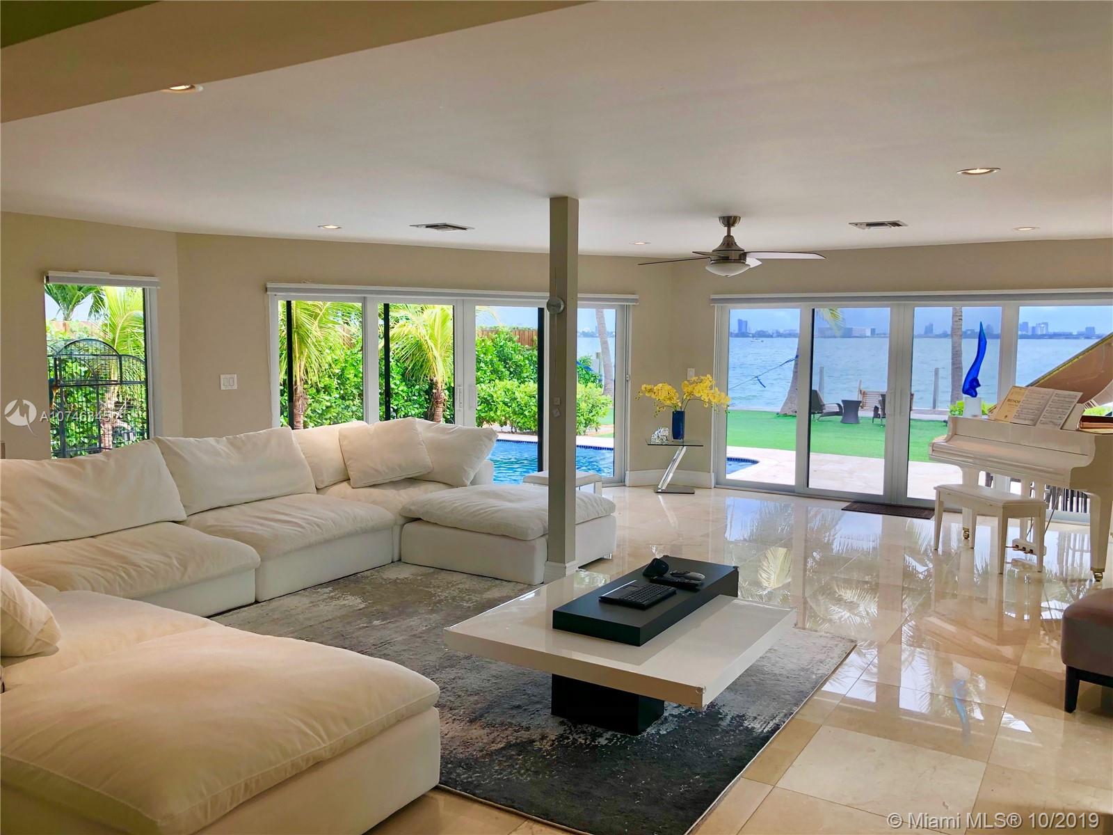 BEST PRICED UPDATED WATERFRONT HOME! Tropical paradise on the open bay with unobstructed views of the Miami skyline and South Beach. This beautiful property offers 60-ft of bayfront, oversized heated pool with beach, and a huge backyard with fire pit! Situated on a 9,000 sqft lot, this stunning 4-bed plus den / 3 bath home has been renovated in 2012 and is move-in ready. The open concept floor plan and wall-to-wall glass allow for the maximum exposure of magnificent water views. Some of the features include marble and wood floors, high-end kitchen appliances, spa shower with steam, giant master suite with sitting area/den, hurricane impact windows and doors, new seawall and boat dock, and one car garage. Amazing location just minutes from South Beach, Bal Harbor, and downtown.