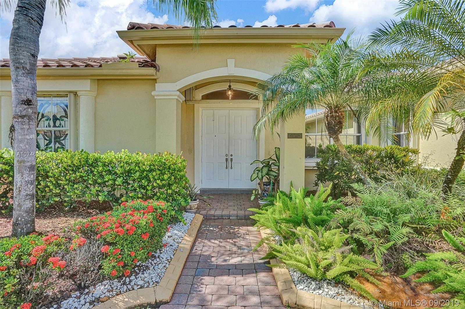 Spectacular Lake Front 4 Bed/ 3 Bath in the very desirable gated community of Encantada in Pembroke Pines. This home has beautiful curb appeal with gorgeous landscaping, paver driveway, and a 3 car garage. Updated kitchen with custom cabinets, granite counters, and stainless steel appliances. Nice upgrades throughout with two sets of french doors, crown molding, accordion shutters, ceiling fans, etc. Encantada offers a beautif and safe gated community with a wonderful clubhouse, pool, and amenities all with a very low HOA fee.