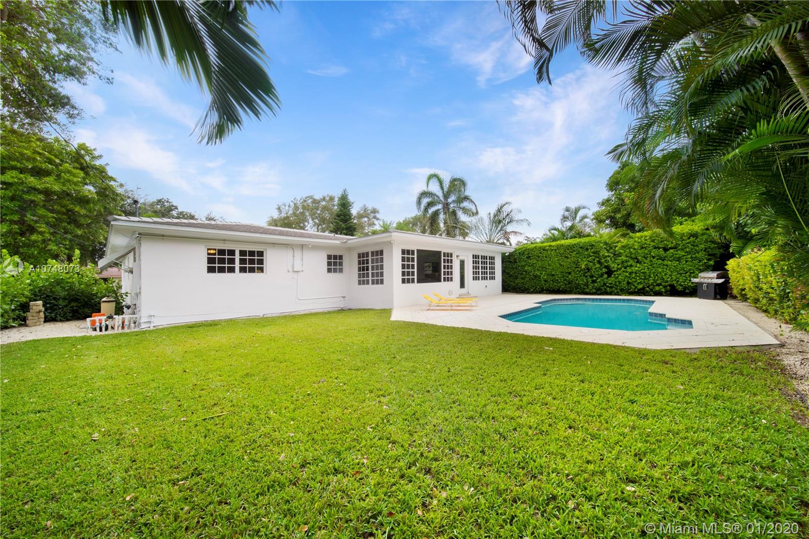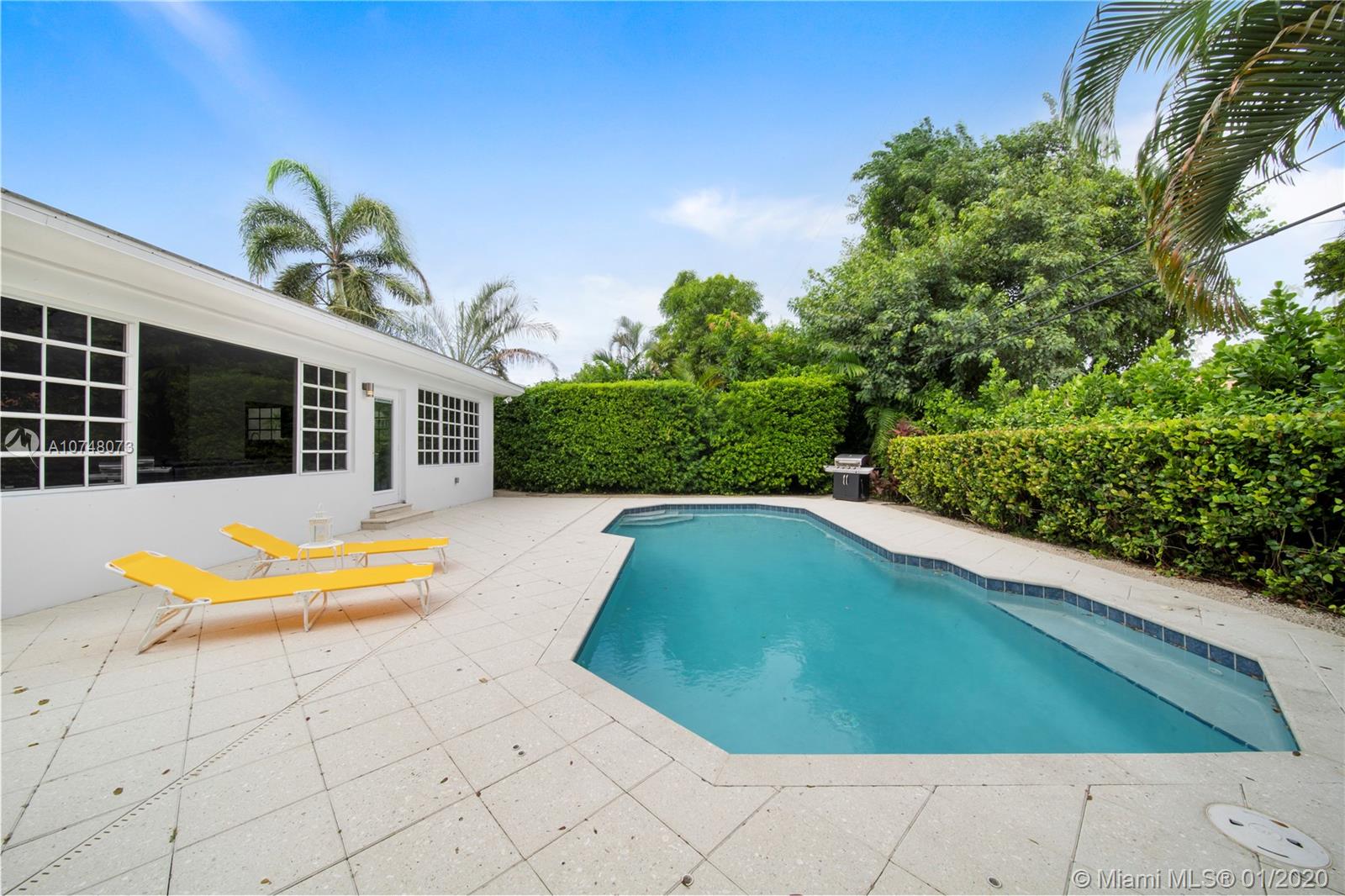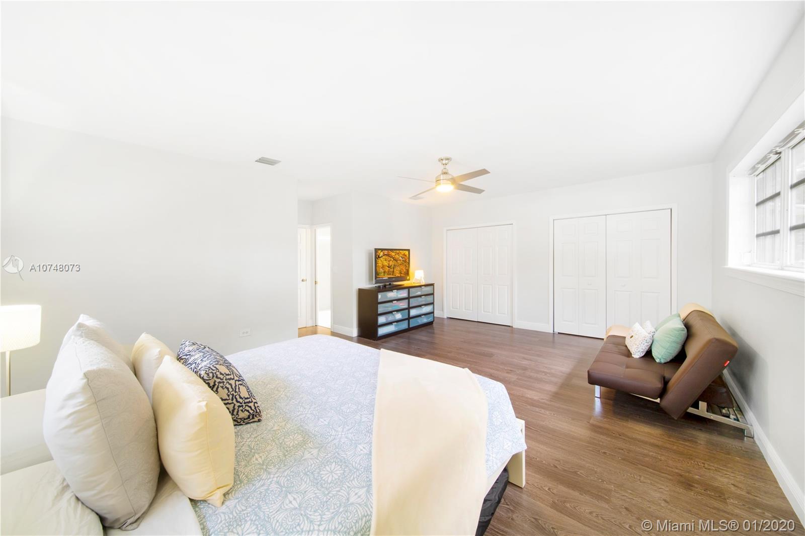 Welcome to East Shores Mid-Century Oasis, a most unique modern ranch home just steps from the bay in one of Miami Shores’ most desirable locations. This may be one of the largest two bedroom homes around, with great flow and wide open living-dining, bespoke office space and a Jenn-Air stainless steel gourmet kitchen perfect for entertaining- all overlooking manicured gardens and custom salt-water pool with entertainment patios. The oversized master suite has large double closets and a bright bathroom with separate tub and shower. All with mid-mod character galore: sleek architectural lines, modern brick details and an inviting entry courtyard, plus updates you’ll appreciate: new roof, AC, water heater, and sprinkler system. Come feel the breeze in your own private MiSho retreat!