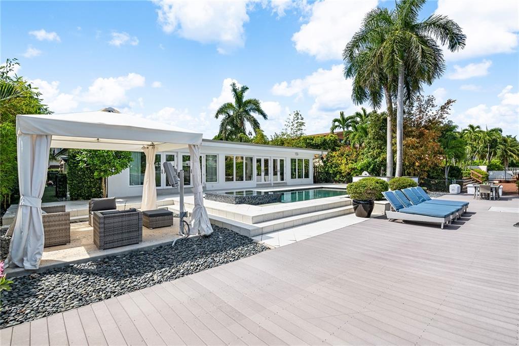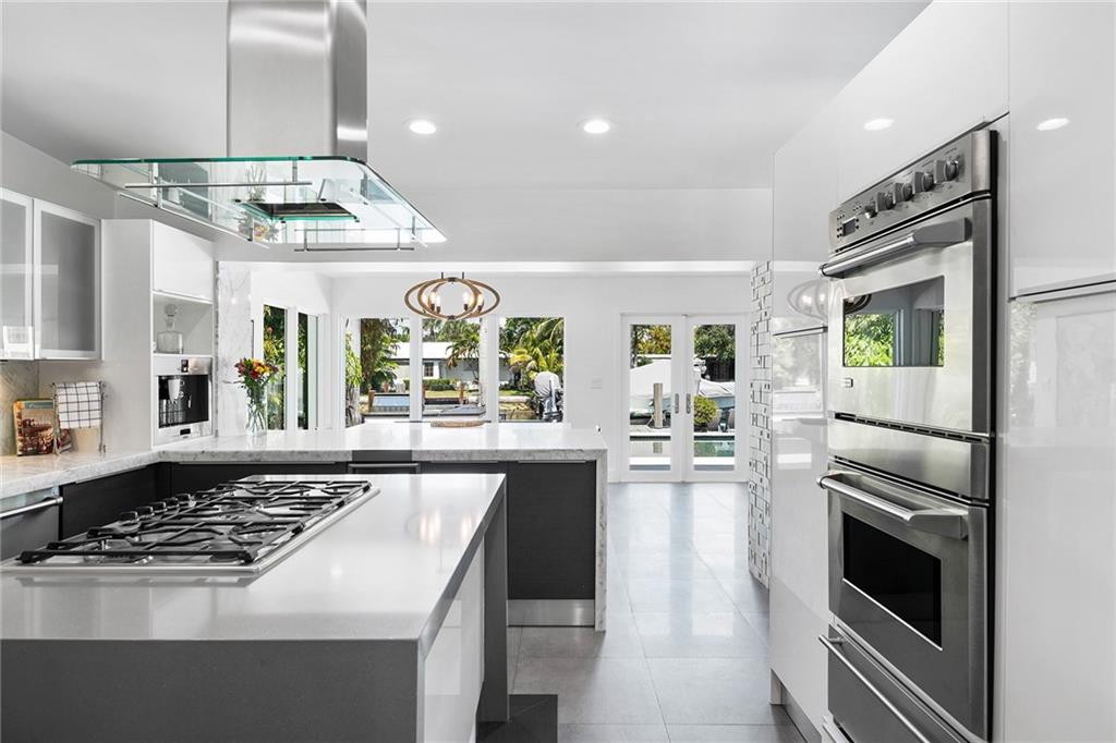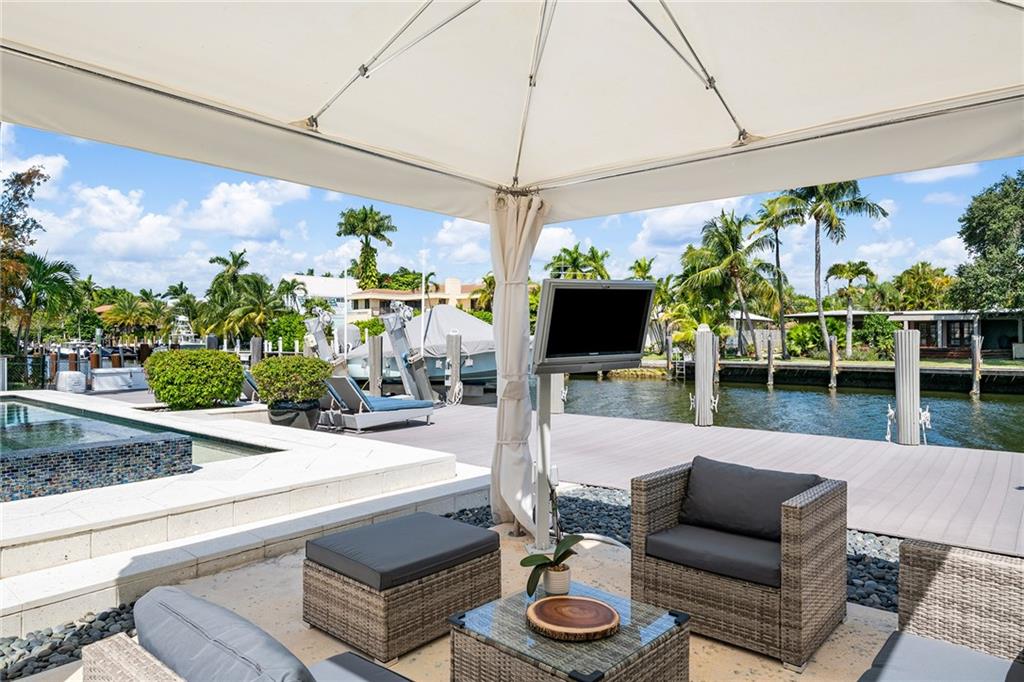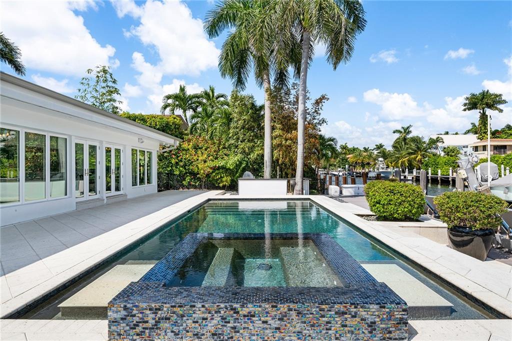 Located in Seven Isles off of Las Olas Blvd., this renovated deep water home offers single level living that has been redesigned with a contemporary flair. 76 ft of waterfront allows dockage of a yacht up to 56 ft in length. Private, gated entry with pergola covered courtyard. An open floor plan combines living, dining, and kitchen areas, all with views of the pool and canal. Composite dock with boat lift. Impact windows and doors. Kitchen and baths have all been remodeled. Living room with fireplace, kitchen with gas cooking and breakfast bar seating. Master has walk-in closets and marble en-suite master bath. Two add'l bedrooms have full en-suite baths. Half bath has outdoor access for cabana bath use. Resort-like backyard. Pool with shallow, beach entry and spill-over spa. Move-in ready