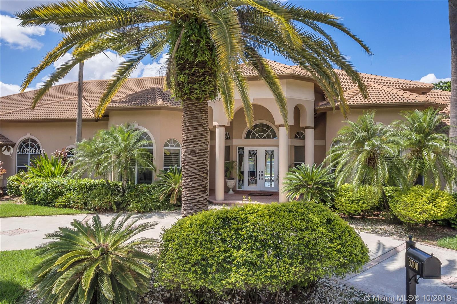 Tucked away in Weston's most prestigious gated neighborhood, this 5 bed / 4.5 bath lakefront home is a gorgeous example of what makes Windmill Ranch Estates so special. High vaulted ceilings and oversized windows enhance the open floor plan and stunning views lake from the spacious backyard. Beautiful finishes like marble and wood floors, chandeliers, and a kitchen finished with all solid wood cabinetry elevate the everyday lifestyle experience even further. At over 1 acre, the lot is private and secluded with a lovely pool and lakefront gazebo - ideal for chic outdoor entertaining all year round. Home is located on a very low-traffic road for great privacy, but also conveniently close to Weston Town Center, Weston Hills Country Club, top schools, parks, library and more.