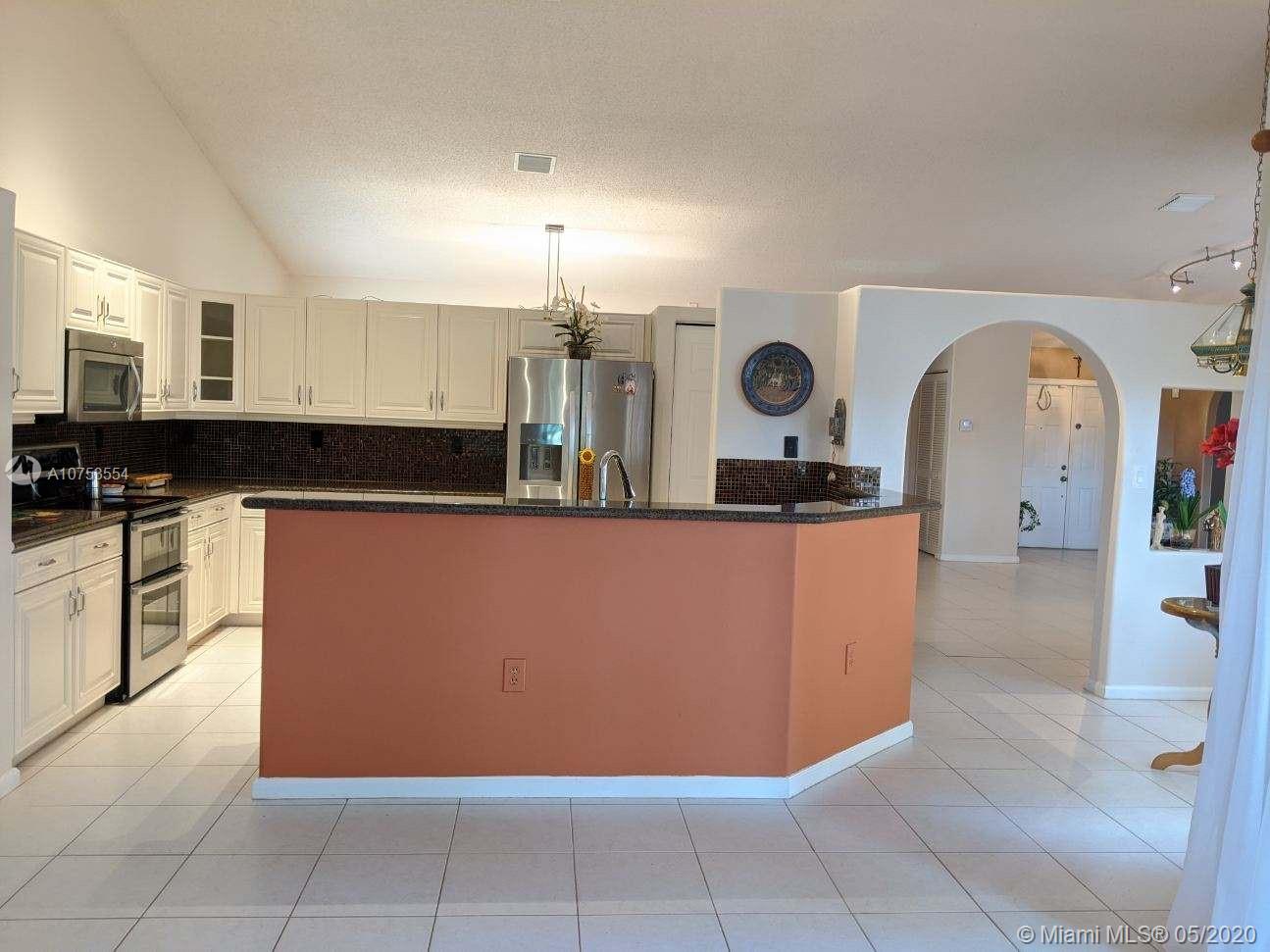 ***MOTIVATED SELLER***Alhambra gated community!!!...This One story 3bed/2bath well kept house sits on a natural preserve with no rear neighbors for maximum privacy. Gorgeous landscaping. Great school zone. Wood and tile floors, updated kitchen with double Oven,stainless steel appliances, Granite Countertops. Tile backsplash. Breakfast area. Vaulted ceilings. Large Master Bedroom and master closet. New A/C...Accordion hurricane shutters. Vacant Property. Quiet gated community with low HOA. Easy to show. Virtual Tour available at https://youtu.be/Ql1M8cMnQ6w