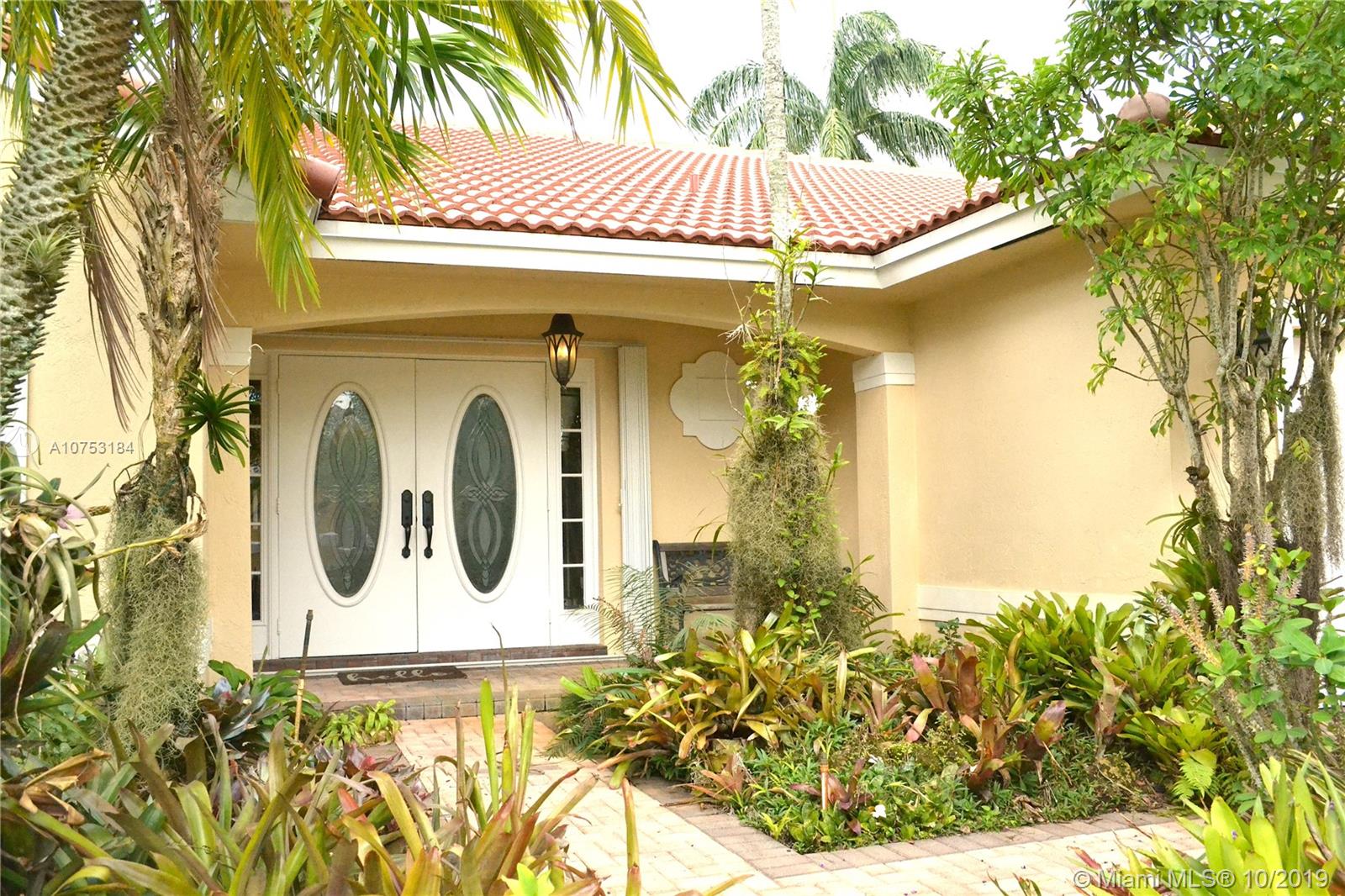 Gorgeous home with Lush Tropical Ambiance, Spacious Floor plan ( see attached in photos ) Oversized Garage with extra space for storage. Roof is only 5 months old ! AC inside unit 1 year old. Amazing Covered terrace, Outdoor kitchen and Beautiful Garden, perfect for Entertaining. Room for a Pool - Oversized Corner Lot 9,432 sq ft. * Accordion shutters throughout the house * Master Bathroom with Bidet. Gated Community with Pool and Gym. Low association fee.