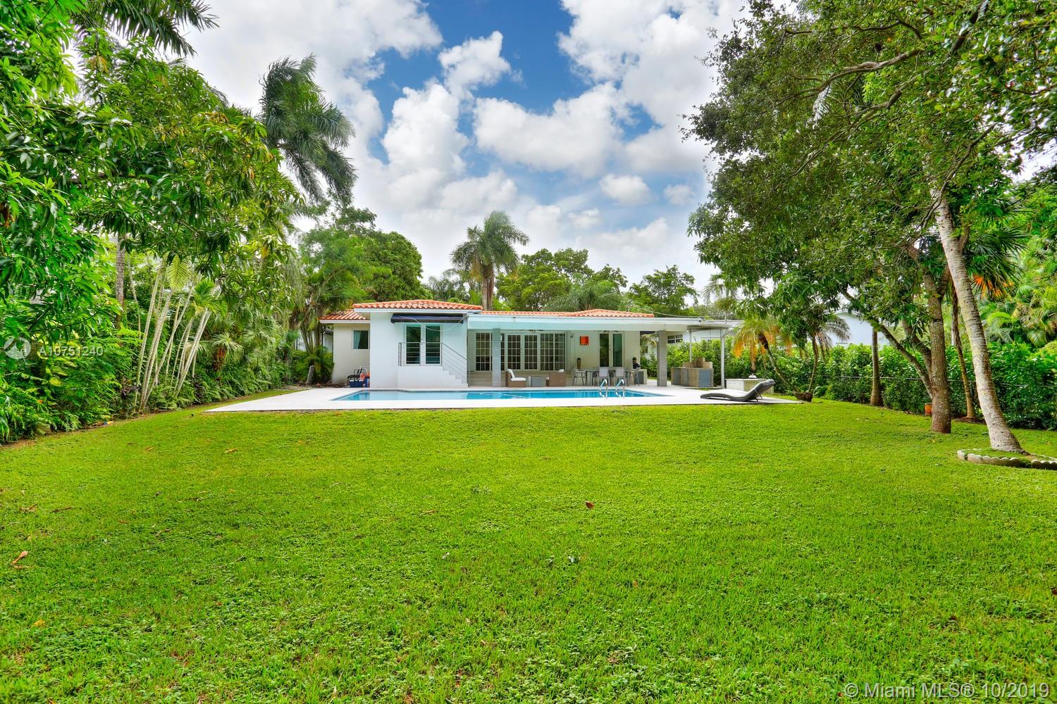 Lovely home in prime South Gables / Grove neighborhood, close to the Grove village center’s galleries, boutiques, cafes and bayfront parks & marinas. Set back on a tree-canopied, oversized lot with lush tropical foliage. Total renovation including (new: impact glass, baths, kitchen, lighting, roof, pool area, 2 HVAC’s, septic system & more). Light-filled living spaces with Brazilian wood flooring and a neutral color palette, create a modern-minimalist feel throughout. Stunning , European-style eat-in kitchen features high-end appliances. Large family room opens to a covered terrace with full outdoor kitchen. Enjoy year-round living & entertaining around the serene pool and ultra-private garden. Minutes to South Miami & Coral Gables renowned shopping & dining venues.