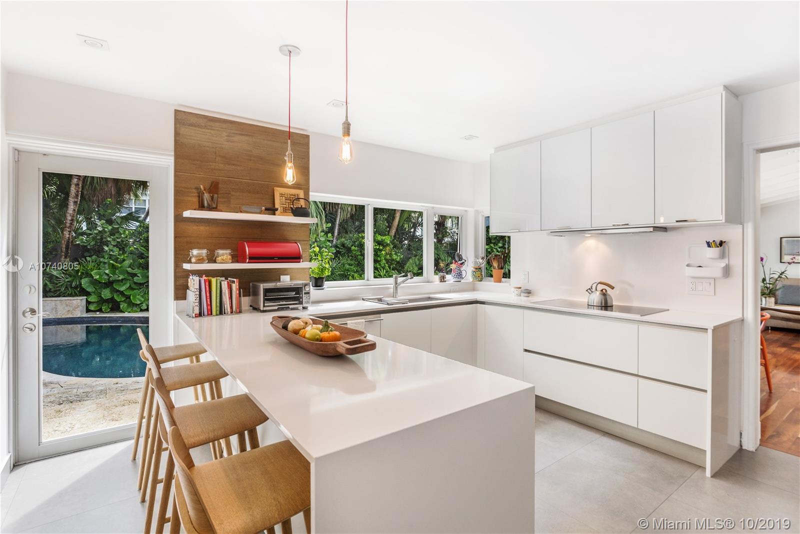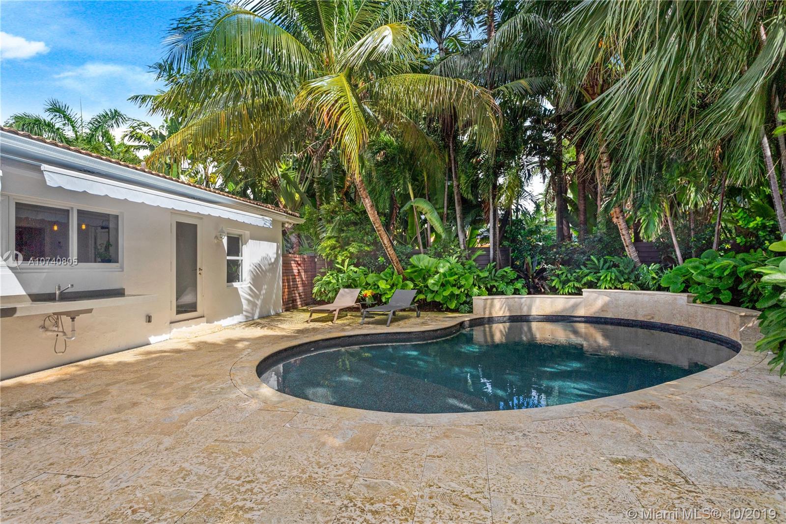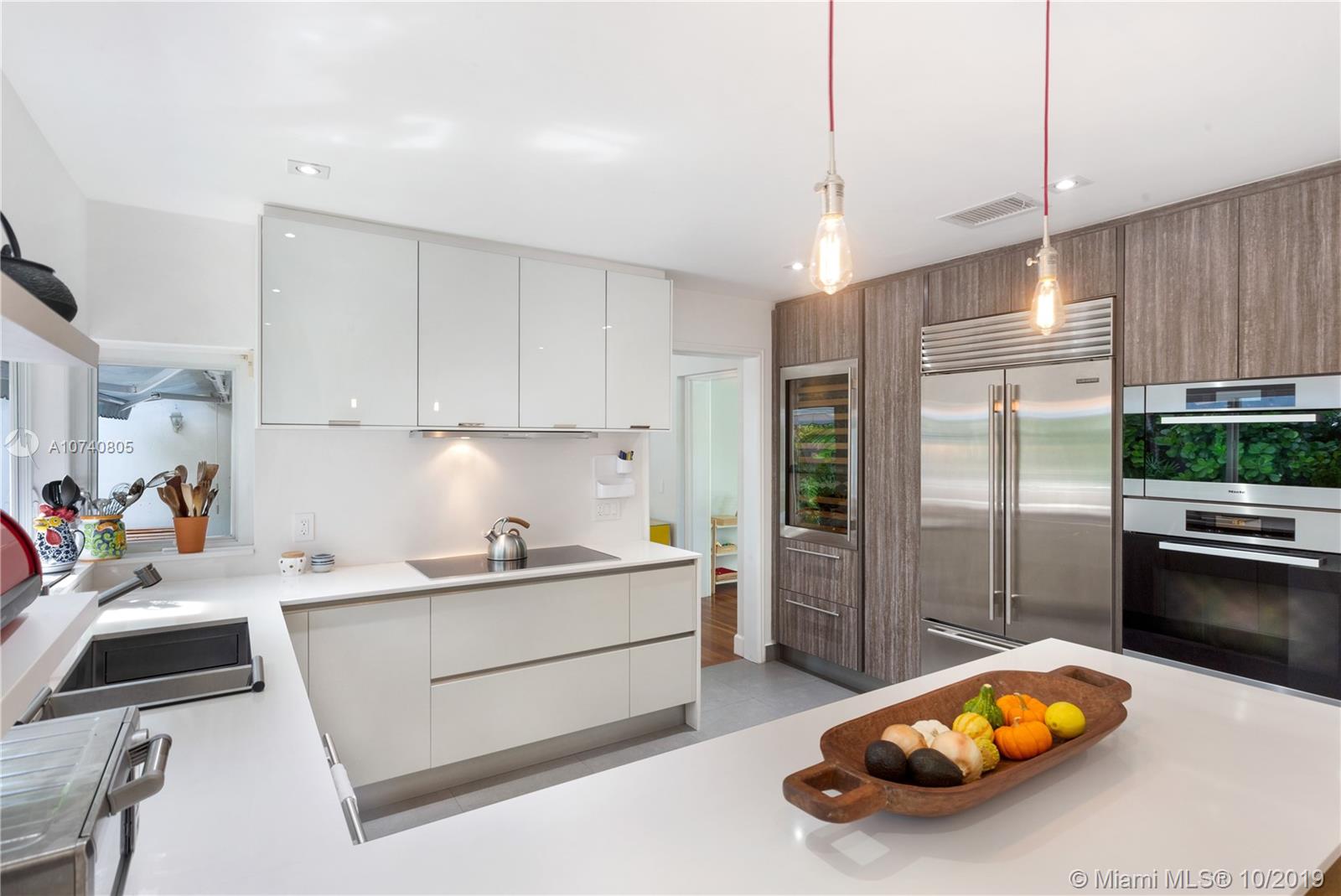 Tastefully remodeled in 2014,4 beds 3/1 baths. Wood floors & Italian tile. Elegant & bright living room w/working fireplace. Duravit master bath.Master & 2nd bed w/ electrical blackout. Ceiling fan in all beds. 2nd & 3rd bed w/ jack & Jill bathroom. Large maid/guest suite room.Modern Kitchen by Ornare, Miele & Subzero appliances, wine cooler that holds 77 bottles.Whole house has water filtration system & Nest thermostat.Pool deck renovated less than 1 year ago w/ Coral Stone,Pebble tech pool giving enduring elegance and durability,brand new pool heater/cooler.Salt water pool. New electrical awning. Landscape by LAND. Impact windows and doors. Electrical 2 car garage. 2 A/C’s. New water heater.ADT alarm. Large lot w/ pleasant and engaging landscape.Ipegates.