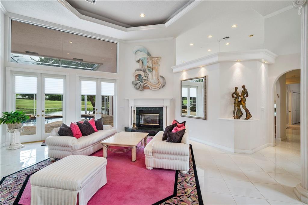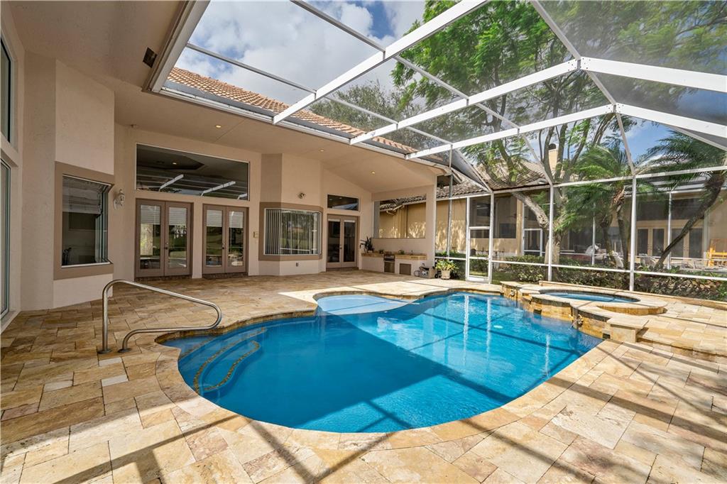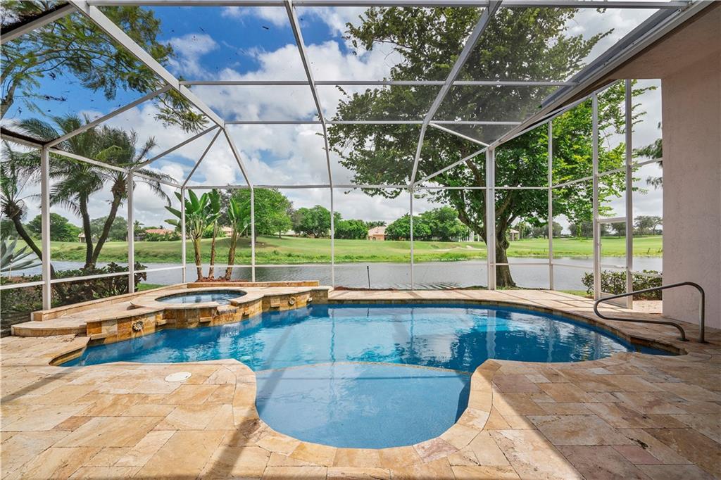 This is the one! Light and bright triple split 5 bedroom 3.5 bath pool home. Unbelievable value under 600k! Large open floor plan that looks out to the pool with natural travertine plus lake and golf views that will take your breath away! Other amazing features include a wet bar, fireplace, new outdoor kitchen and newer roof. Guard gated community with optional golf membership.