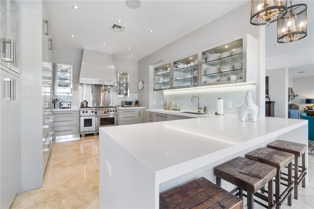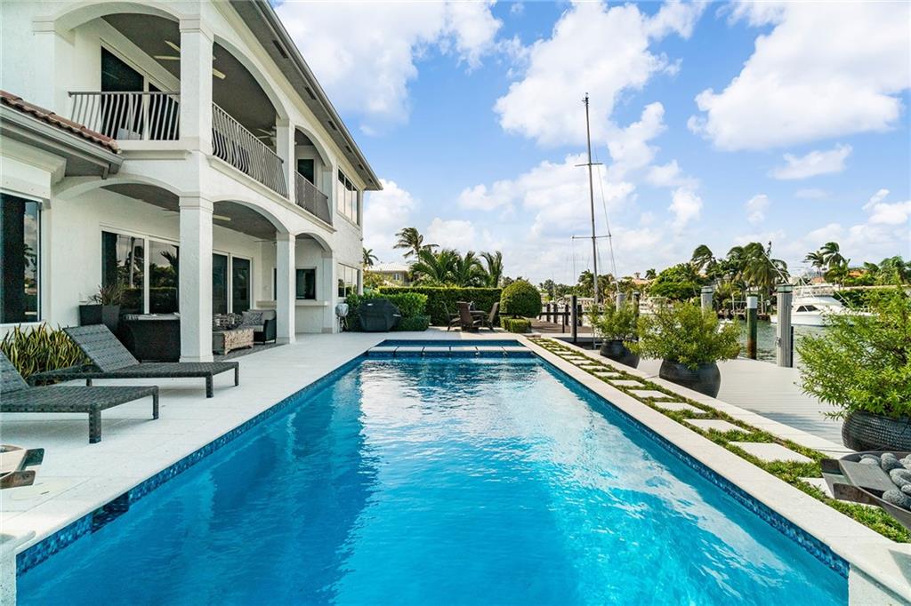 This exquisitely remodeled home features 70ft of dockage on 150ft wide canal with great views only minutes away by yacht from the inlet. The current owner recently also completed the new pool, spa, composite dock, new pool deck, and new impact windows. Downstairs features a new gourmet kitchen with Wolf gas range, dining area with a bay window, new marble floors, great room and wet bar facing the water. Guest bedroom with private bath and oversized two car garage and laundry room. A modern staircase leads to a total of three bedrooms upstairs. Gorgeous new master bath with dual vanities, separate bath and shower, beautiful master bedroom with large walk-in closet and a romantic waterside balcony. Just move in and enjoy the close proximity to shopping, downtown and the ocean.
