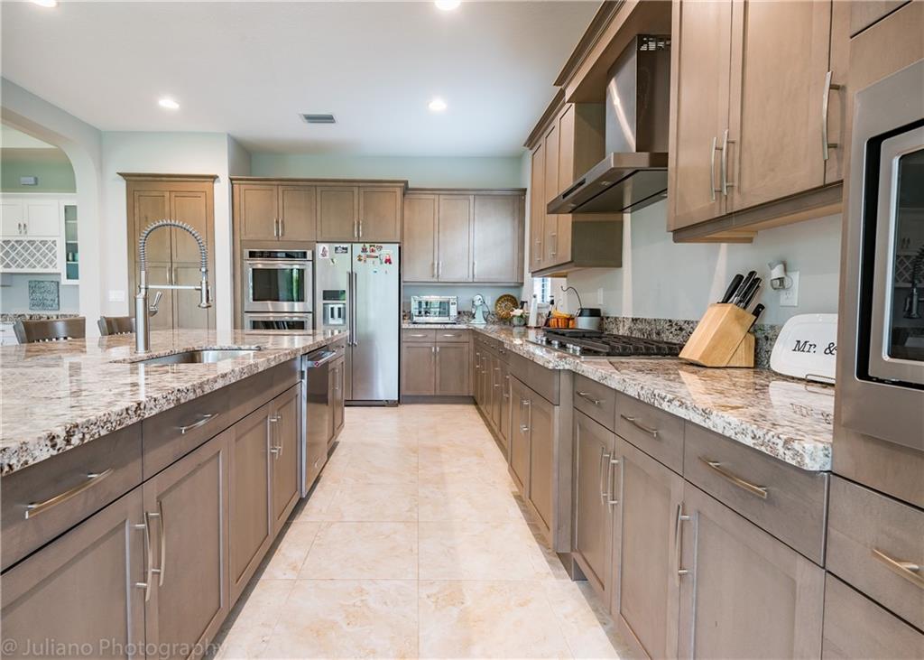 Turn Key rare Cheshire model. 4 bed 3 1/2 bath home with 3 car garage in Watercrest gated community. Features vaulted ceilings, stunning extra large island with granite for entertaining. kitchen with gas range and double ovens. New, energy efficient, all impact glass windows and doors. Porcelain tile throughout, no carpets. Walk-in kitchen pantry, LED lighting, Nest thermostats and wood blinds. Extended Driveway.Large covered lanai with outside Tv hook up. Custom bar with granite, and tv wall mount with subway tile backslash. Upgraded gas front load washer and dryer. Grand master suite with built in rainfall shower head. Resort style amenities including the lakeside Pierhouse Club; fitness center, zero edge entry pool, splash pad, jungle gym, tennis, basketball, dog park and more.