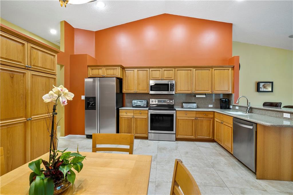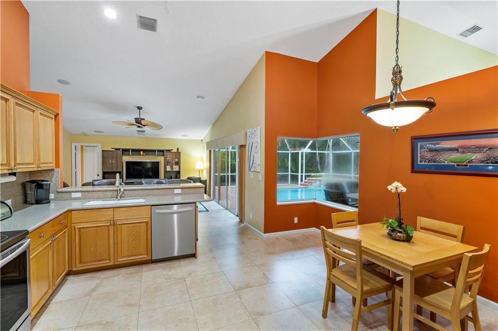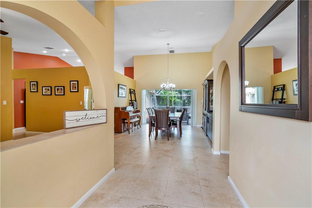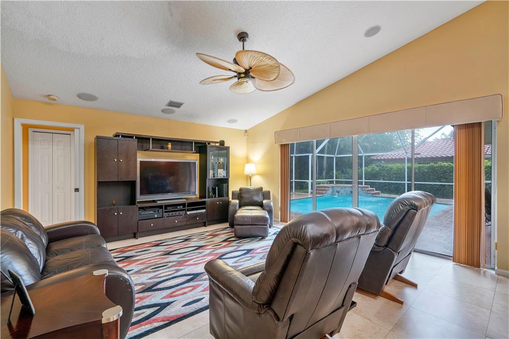 As you enter this meticulously maintained & upgraded 4/3 home, you immediately appreciate its serenity which is accentuated by its Porcelain floors, volume ceilings & direct views of the screened heated pool. Brick paver patio & front drive & walk-way.Triple split bedroom floor plan (great for in-law suite).Spacious master bedroom with pool view & Master bath suite w/separate shower (w/two shower heads) Roman tub and two sinks. Remodeled kitchen w/Oak cabinets, Marble counters & SS appliances. Knockdown ceilings/walls. Formal LR, Formal DR, FR, Eat-in Kitchen w/snack bar counter. New Roof (2012), AC w UV light (2014), Pool heater (2019), Front Loader W&D (2019), Oven/Microwave (2018) ,LG dishwasher (2016).Sprinkler on Well. Hurricane Fabric for all window/sliders/doors.
