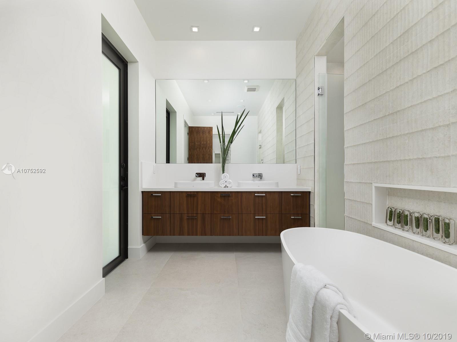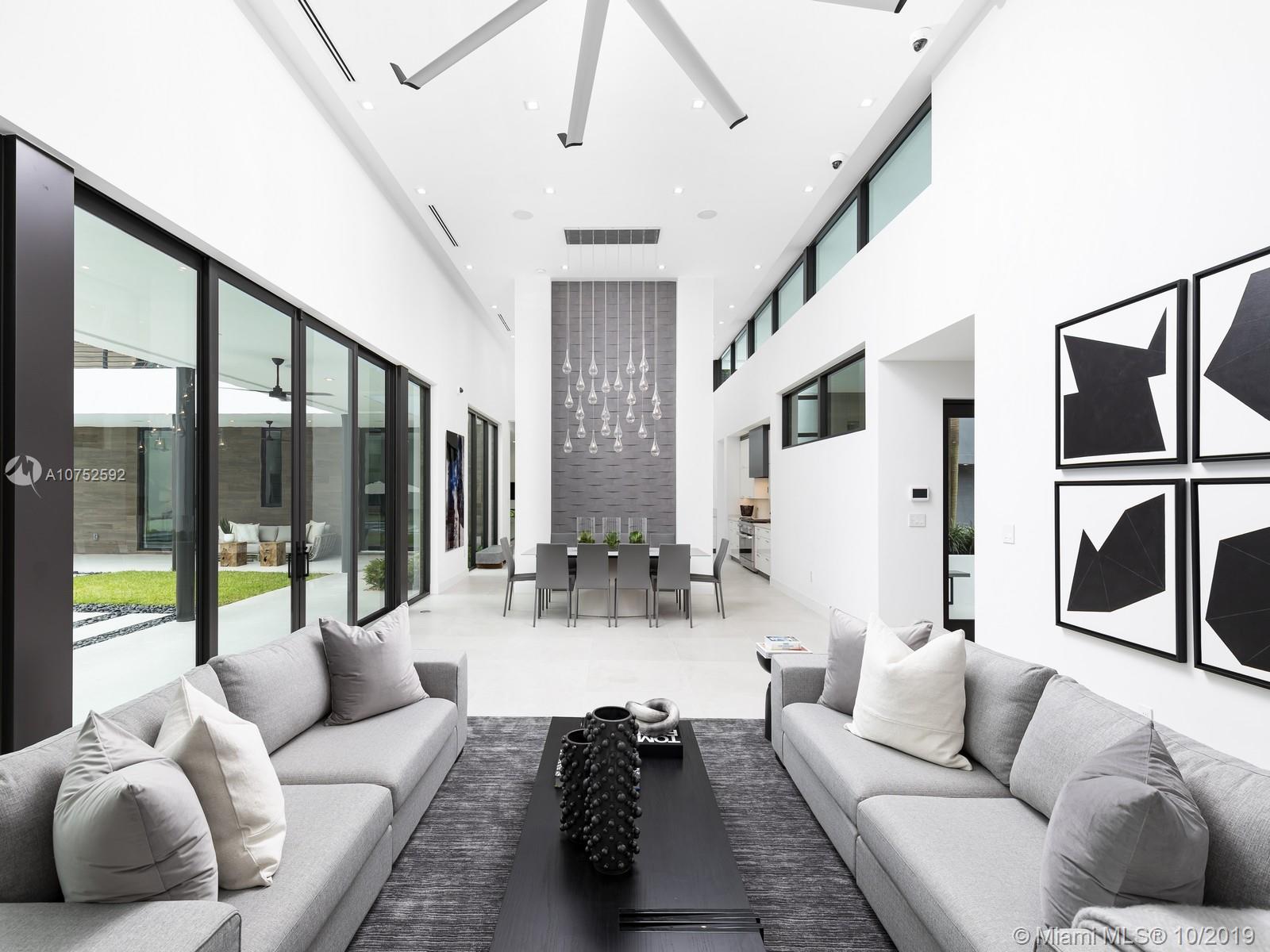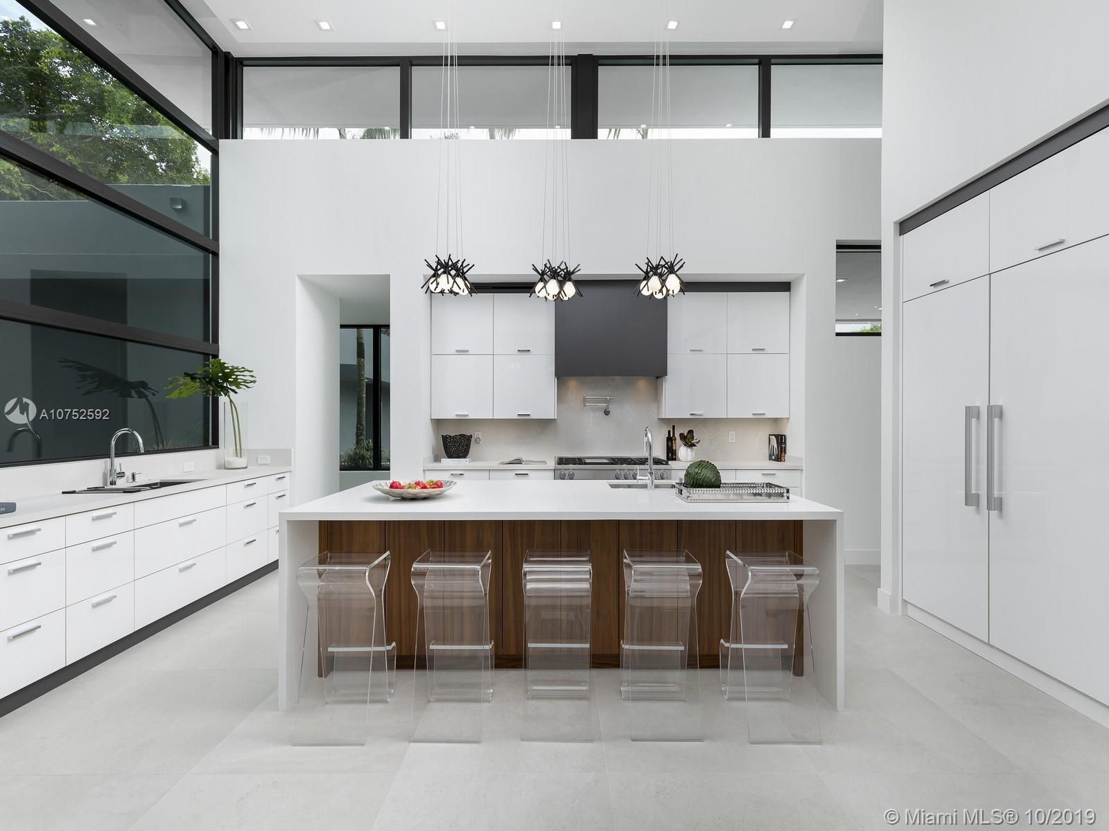 Brand new modern estate located in Pinecrest. Greeted by a pivoting door leads to a gorgeous home offering a boundless flr plan w/exquisite finishes. The grand living & dining rm offer double height ceilings & endless outdr views by its oversized flr to ceiling high impact windows & drs. Master suite on the ground level w/sitting area, walk-in closet, a gorgeous mastrbth w/double shower, floating tub & double vanities. Floating staircase leads to 3 upstairs bdrms, all opening to an expansive balcony. Amenities incl: Concrete Roof, designer kit w/Miele appl, incl gas range & wine cooler. Porcelain & wd flrs throughout, Smart Integration, Resort Style Pool w/Multicolor Jets, Summer Kit, 3 car garage, Gated, natural gas, generator ready. VISIT OUR PROPERTY VIDEO: https://youtu.be/f_J2CJmaprQ