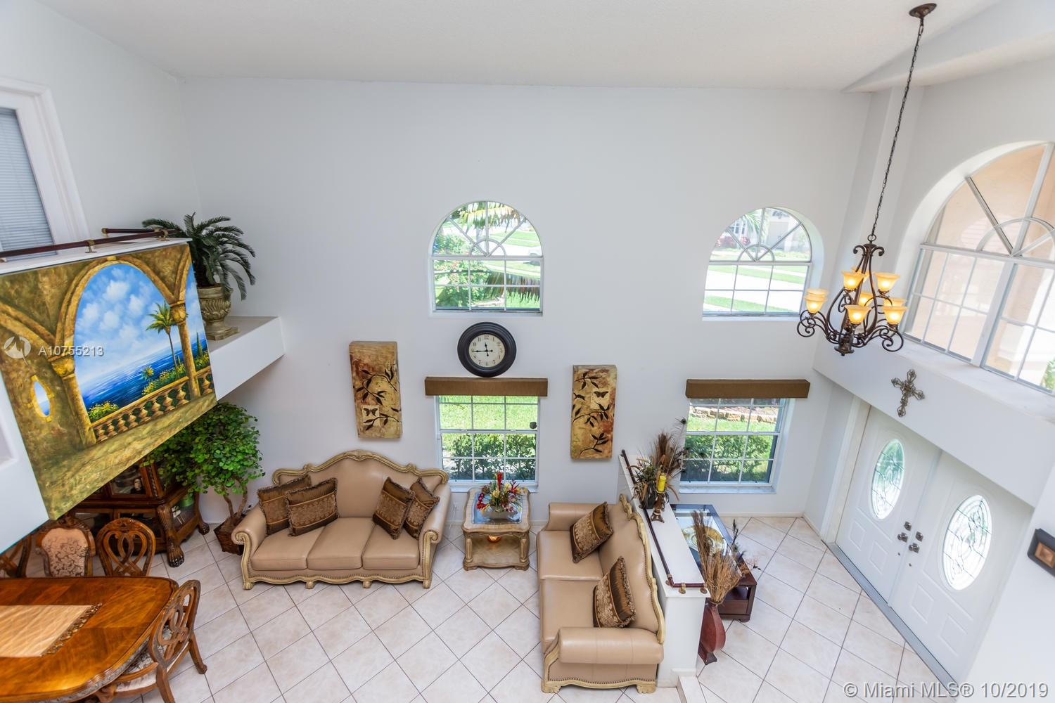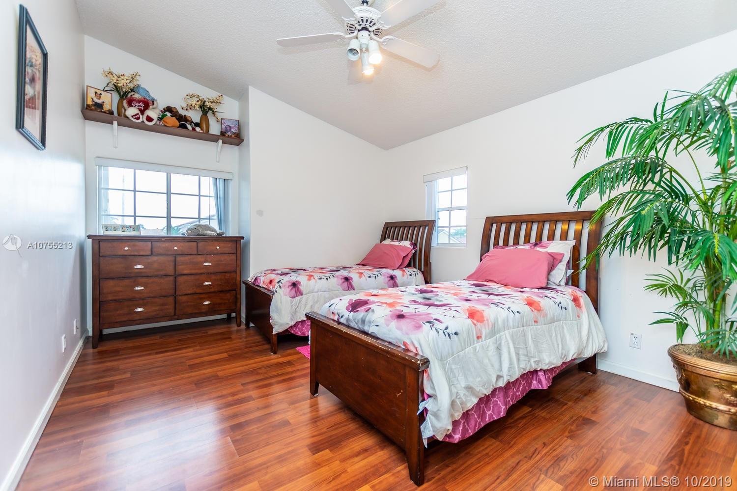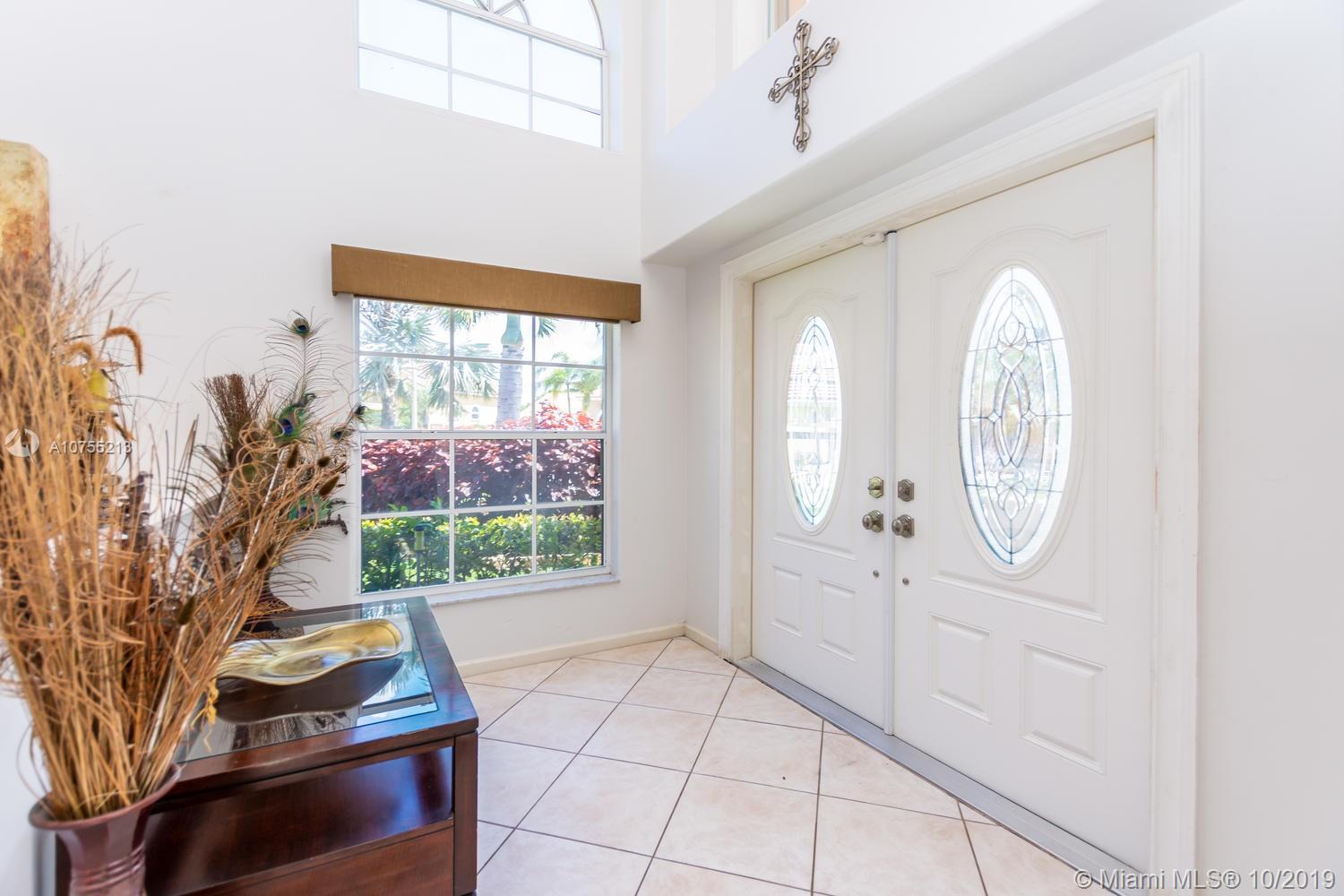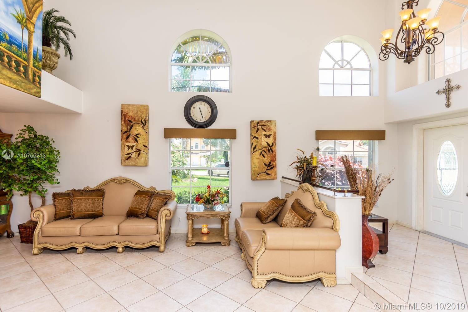 Extremely rare large 5B/4B home. One Bedroom at the ground level. Second floor Master suite with large separate room which may be used as an office or suitable for babies' nursery with space for two or more cribs. Room has a wet bar and under counter refrigerator. Upgraded large kitchen with wood cabinets and granite counter tops. Breakfast nook and bar off kitchen. Formal dining and family room. 3 car garage to fit large vehicles or van. Brand-new tiled roof and new A/C. Home main entrance has impact doors, and accordion shutters for hurricane protection throughout the house.Screen in patio. New white PVC fence, for the enjoyment of children/pets. Ideal for extended family.Owners partially relocated out of the State.Contact listing Agents. Very important, call agents to deactivate alarm.