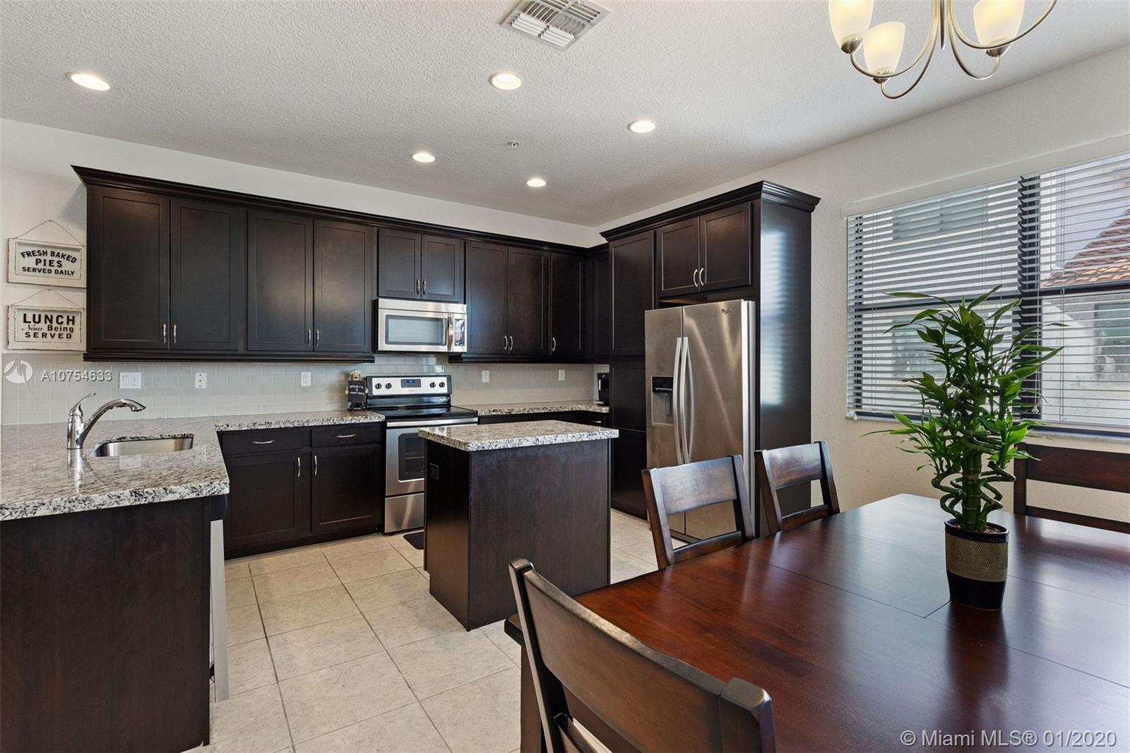 Beautiful new construction in the desirable community of Raintree in Pembroke Pines. This three bedroom, 3.5 bathroom townhome has all impact windows and doors throughout the house. This tri-level Townhouse offers upgrade kitchen with stainless steel appliances, granite counter tops, peninsula & island offers plenty of storage. Spacious Master suite with his/her closet, dual granite vanity, soaking tub with separate shower. Tile floors in all main areas and neutral carpets in all the living rooms. Interior laundry room and storage closet. Low HOA and close to Pines Charter Schools and Pembroke Garden Mall.
