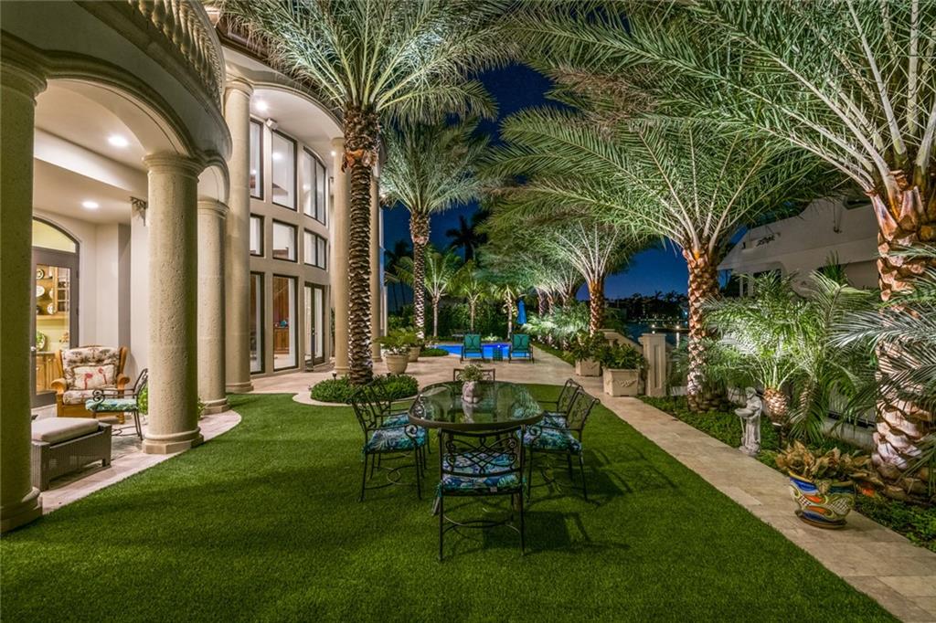 Magnificent water views sweep to the New River and Intracoastal from this impressive Modern Mediterranean estate fronting 125± ft. on the grand Lido Canal, one lot from the point, with prime dockage for a 100±-ft. yacht and a 13,750 square foot lot. Boasting 5 bedrooms, 7 baths and over 7000 square feet of living space, a fabulous entertaining space, opening to the waterfront’s sprawling pool terrace with exquisite landscaping, the spectacular 2-story window-walled great room features a fireside sitting area, media area and professional-style bar. Gourmet kitchen. Paneled office/billiard room. Ultra-luxurious first-floor master suite. 3 car air conditioned garage. Full house generator.