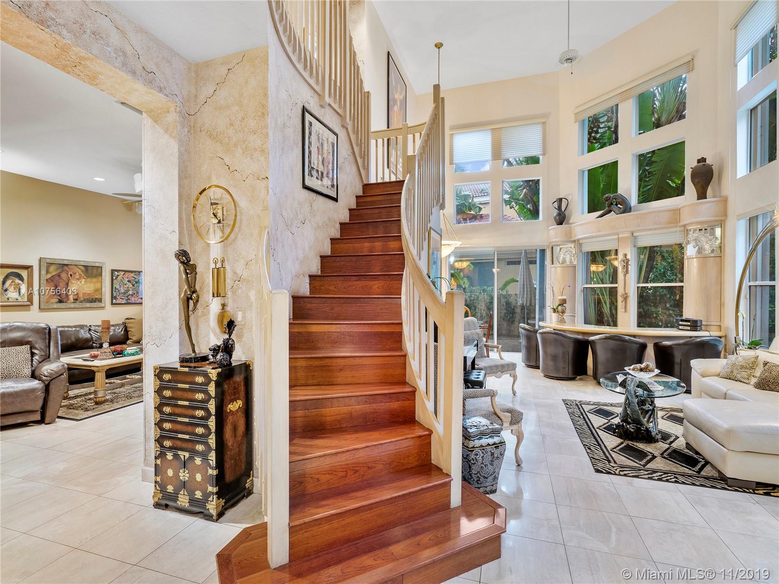 Beautiful Single Family Home in prestigious Island Way community. This home features an oversized lot (only 8 in the entire community this large), 4 bedrooms, 3 bath, with a bedroom (guest) on the first floor. Great updated kitchen open to Family room. High ceilings, marble floors, separate bar, formal dinning room, and living room, a free form full size pool, one car garage and full maids room and bathroom are some of the many features of this amazing home. Home features Hurricane Shutters, outdoor lighting, security system and a guard house and sprinkler system.