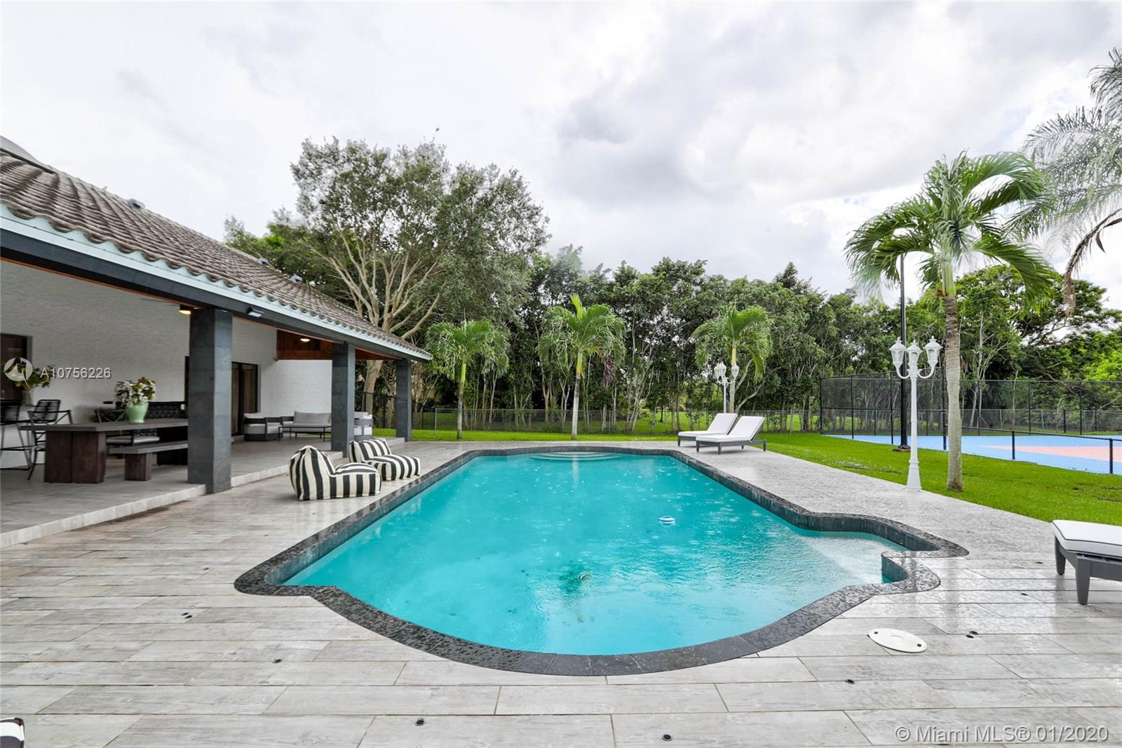 Do not miss out on this one of a kind estate in Majestic Groves in Davie. This 5/5.5 with over 5,000 square feet has been completely renovated! A brand new custom kitchen was put in with top of the line appliances, countertops, and cabinets. All of the flooring was re-done and every single one of the bathrooms as well. The backyard was totally redone and the tennis court was redone with a fast-dry court, ball machine, and new hitting wall. The pool house out back was redone is a full 1/1 that can be used as a guest house. Roof and A/C's were just replaced and the entire home is staged with over $200k worth of custom furniture. This is a truly incredible home!