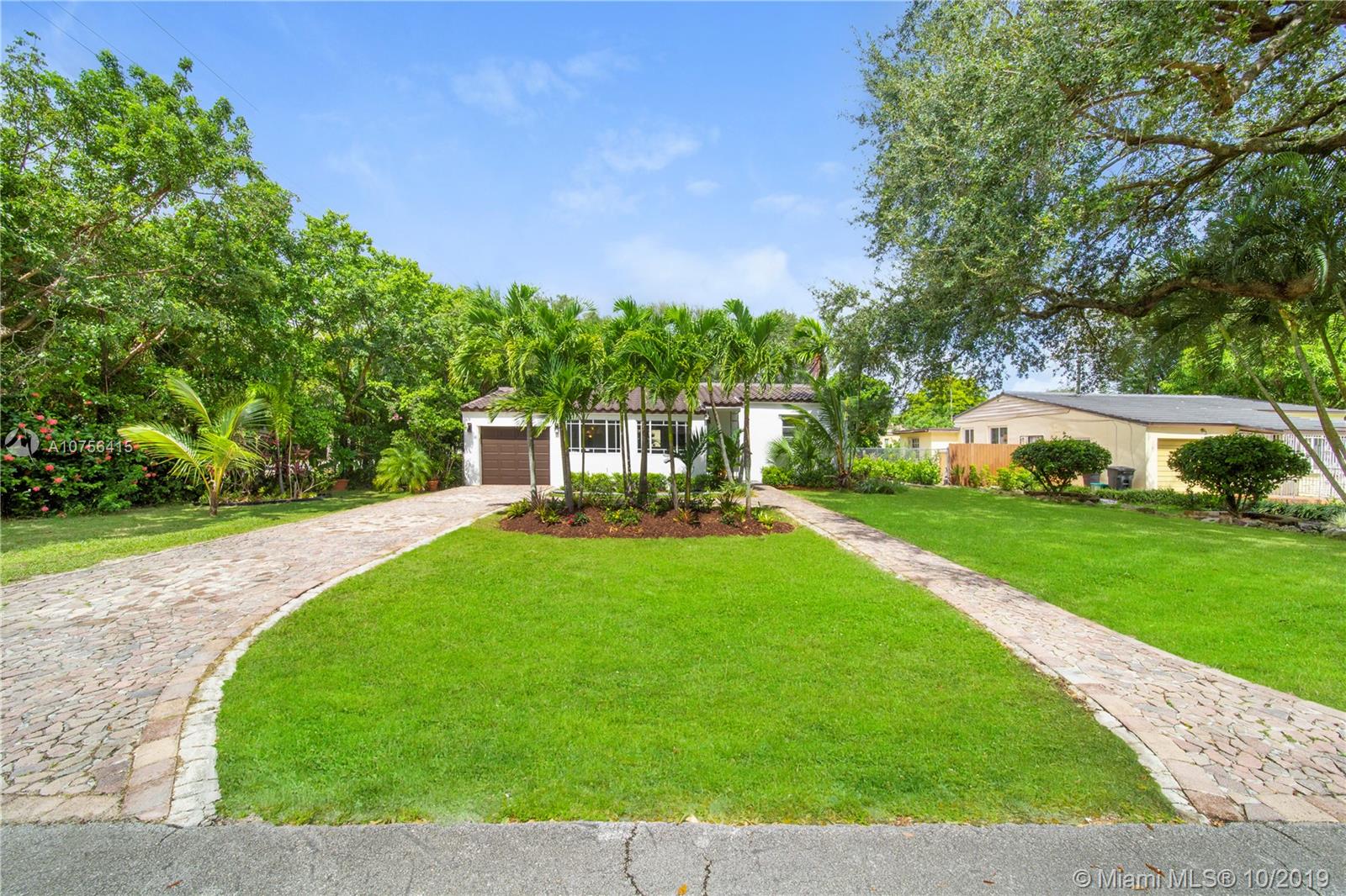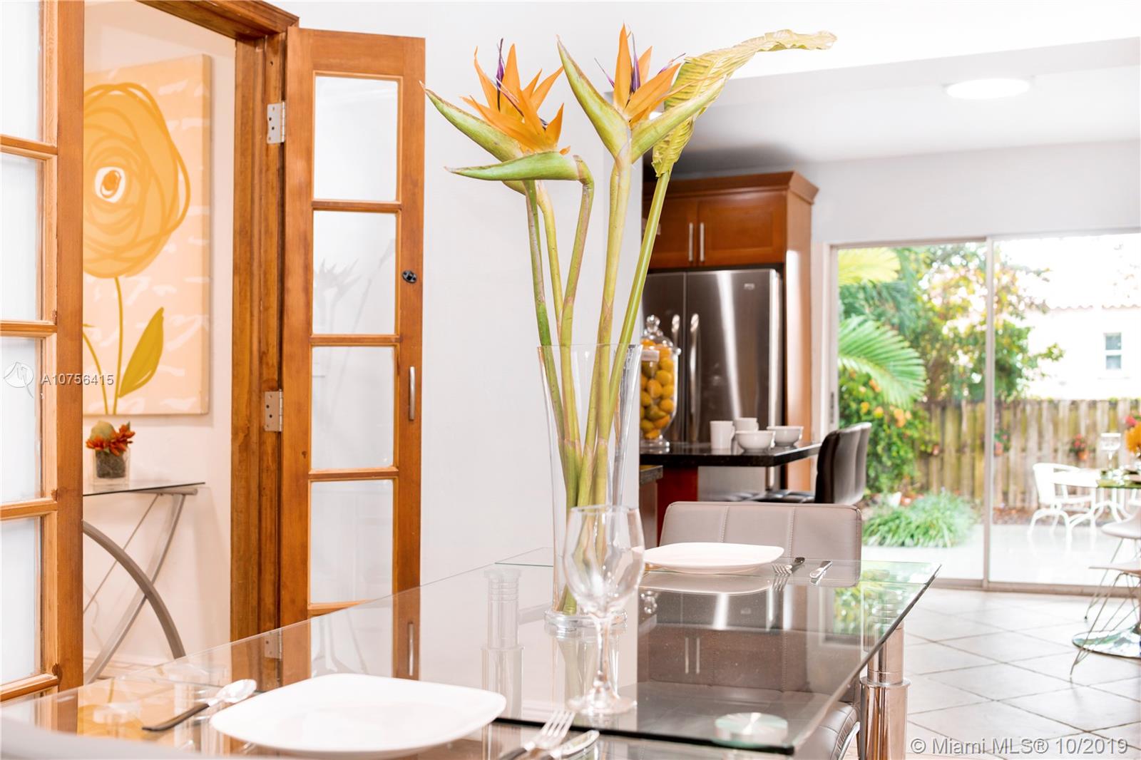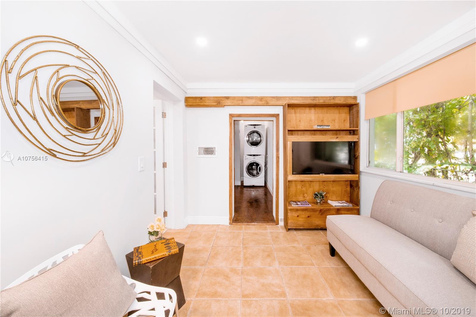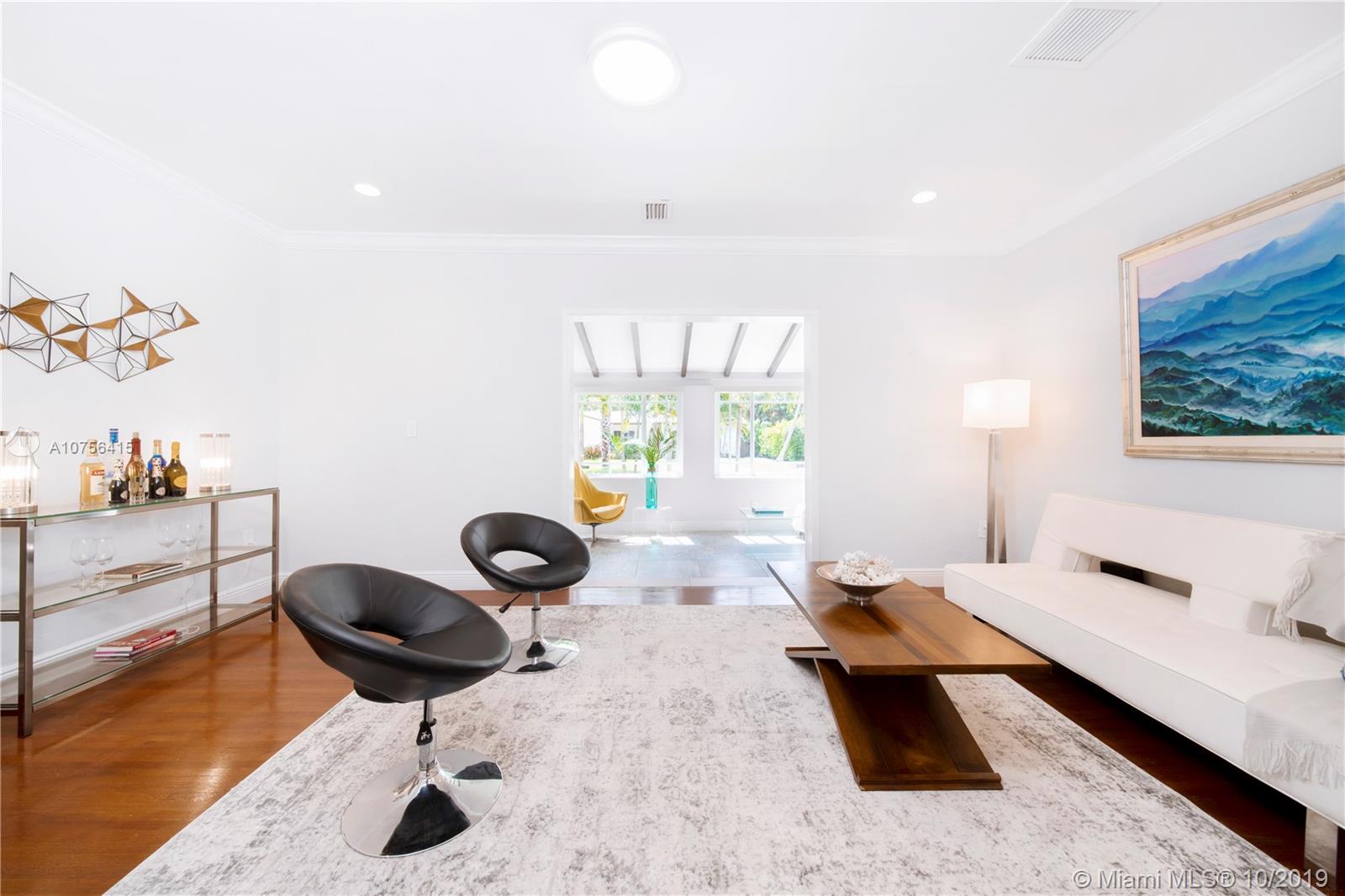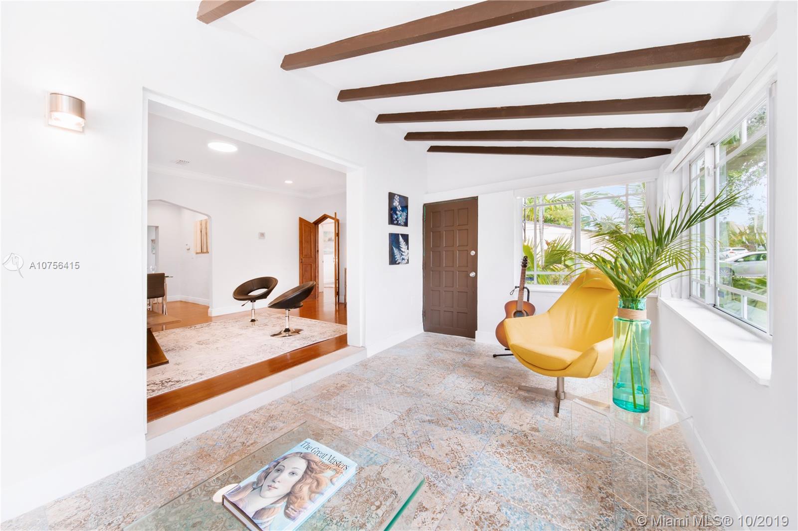Welcome to Villa Aqua Palm. This sprawling 1940s Shores charmer is more than meets the eye with a unique blend of space, authenticity, and privacy. Bespoke elements include custom wood doors, spade archways, original hardwood floors, bright retro-chic sunroom, formal living and dining, updated kitchen, separate office, and huge laundry room. Plus, there are three spacious bedrooms and a bonus connected flex room with private entrance - great as a fourth bedroom, guest suite, or second living area. Did we mention the brand new roof? You’ll treasure relaxing evenings in your lush backyard patio oasis with mature trees and tropical foliage. All tucked away on a quiet tree-lined cul-de-sac corner lot in desirable Miami Shores. Come discover your own slice of paradise at Villa Aqua Palm!
