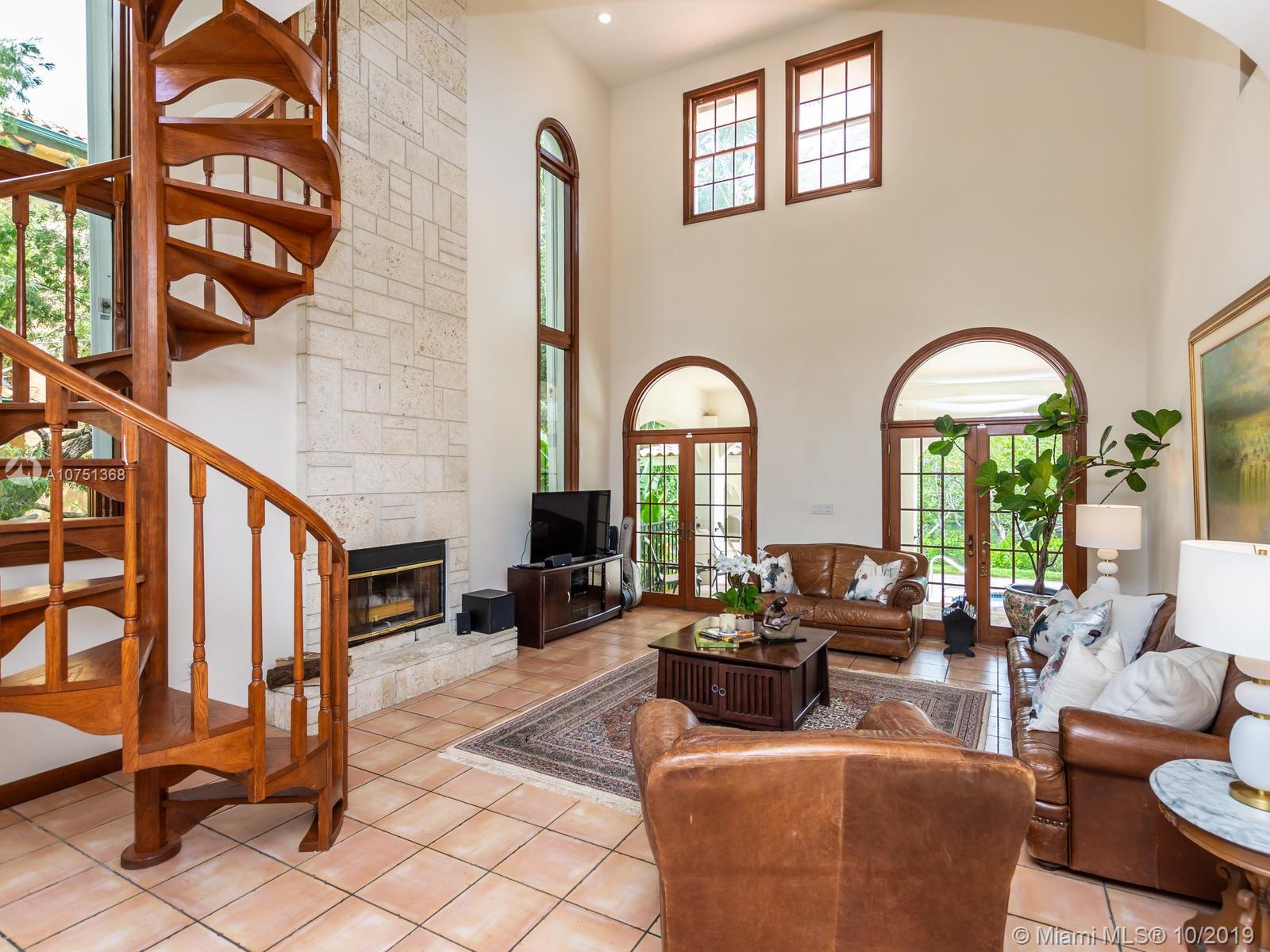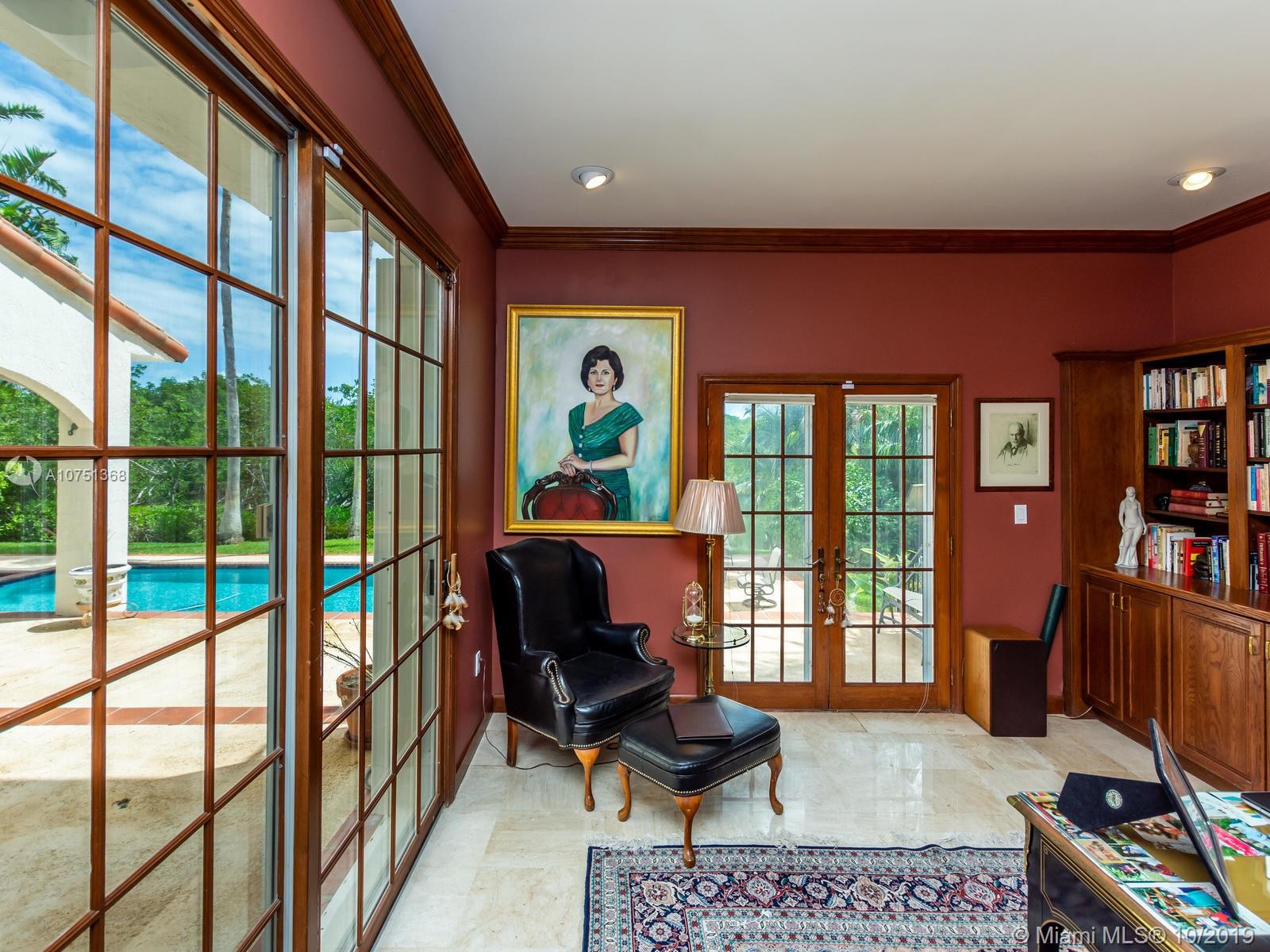 Poised in a well guarded community, this elegant tri-level Mediterranean residence possesses great style and warmth, achieved through exceptional design and superior grade construction. A six bedroom and six and one half bath with serene views of the lush patio and pool area, private water views and majestic mangrove preserve. Finely crafted custom woodworks with gleaming beige marble floors. Entry foyer, formal living room, formal dining room and large traditional library. Two story keystone fireplace in spacious and inviting family room. Newly renovated dock.