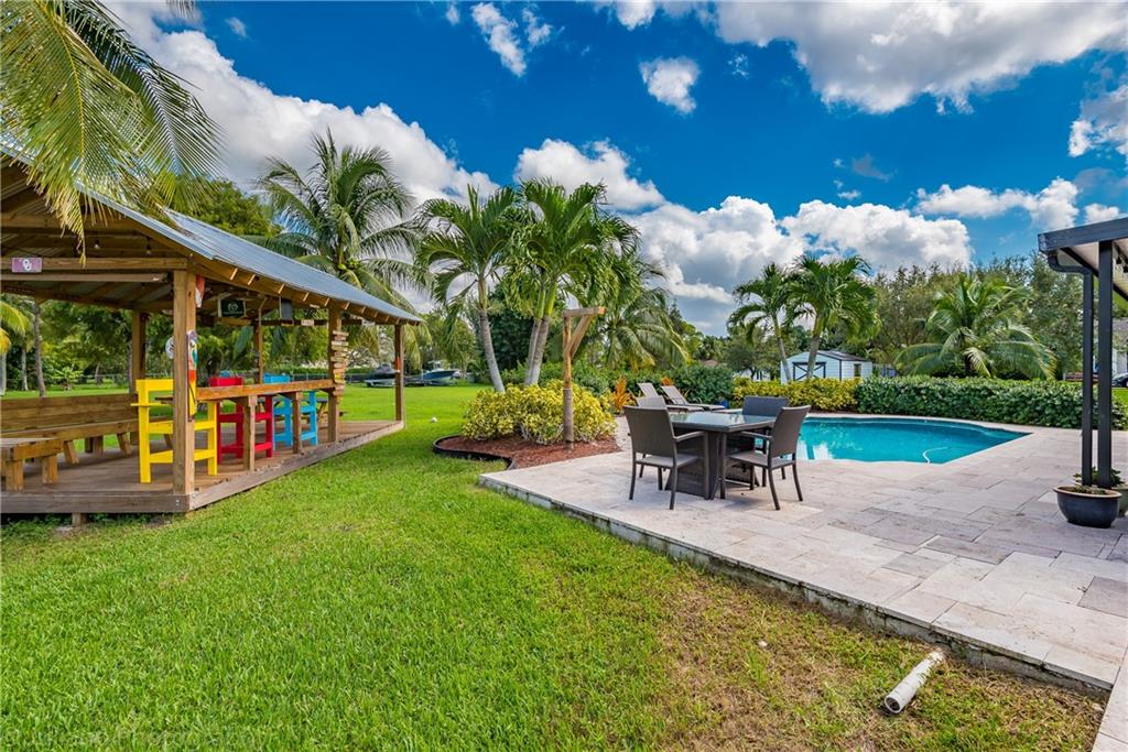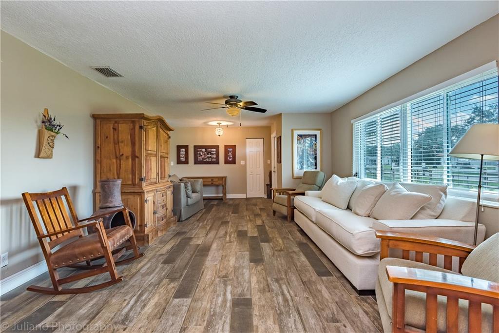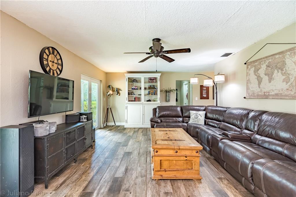 This Modern Farmhouse has a large split floor-plan, designer style kitchen perfect for a chef featuring a huge sink overlooking your acre of land, white cabinets, dry bar, trendy barn doors, and stainless steel appliances. Relax on the porch, in the "she shed," or by the pool surrounded by travertine! This house screams entertaining! Massive 1 acre yard has room for any and all of your hobbies. Yard is entirely fenced in for pets. Prime location for country living by a big city. Literally only 5 minutes from I-75. New Paint. Impact Windows & Doors. Newer water system. Gas for appliances. Wood Look Ceramic Floors. Run your business. Horses welcome.