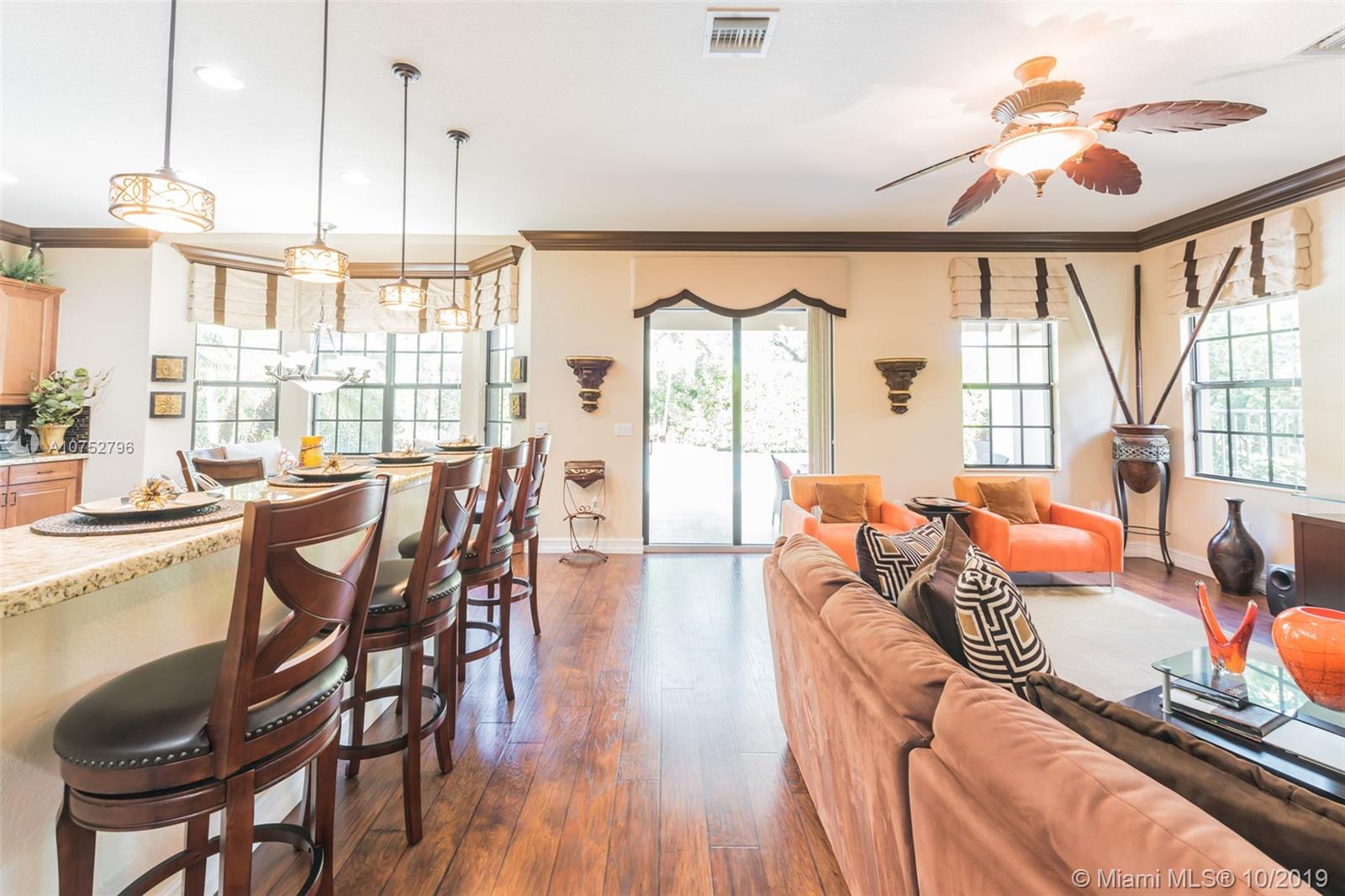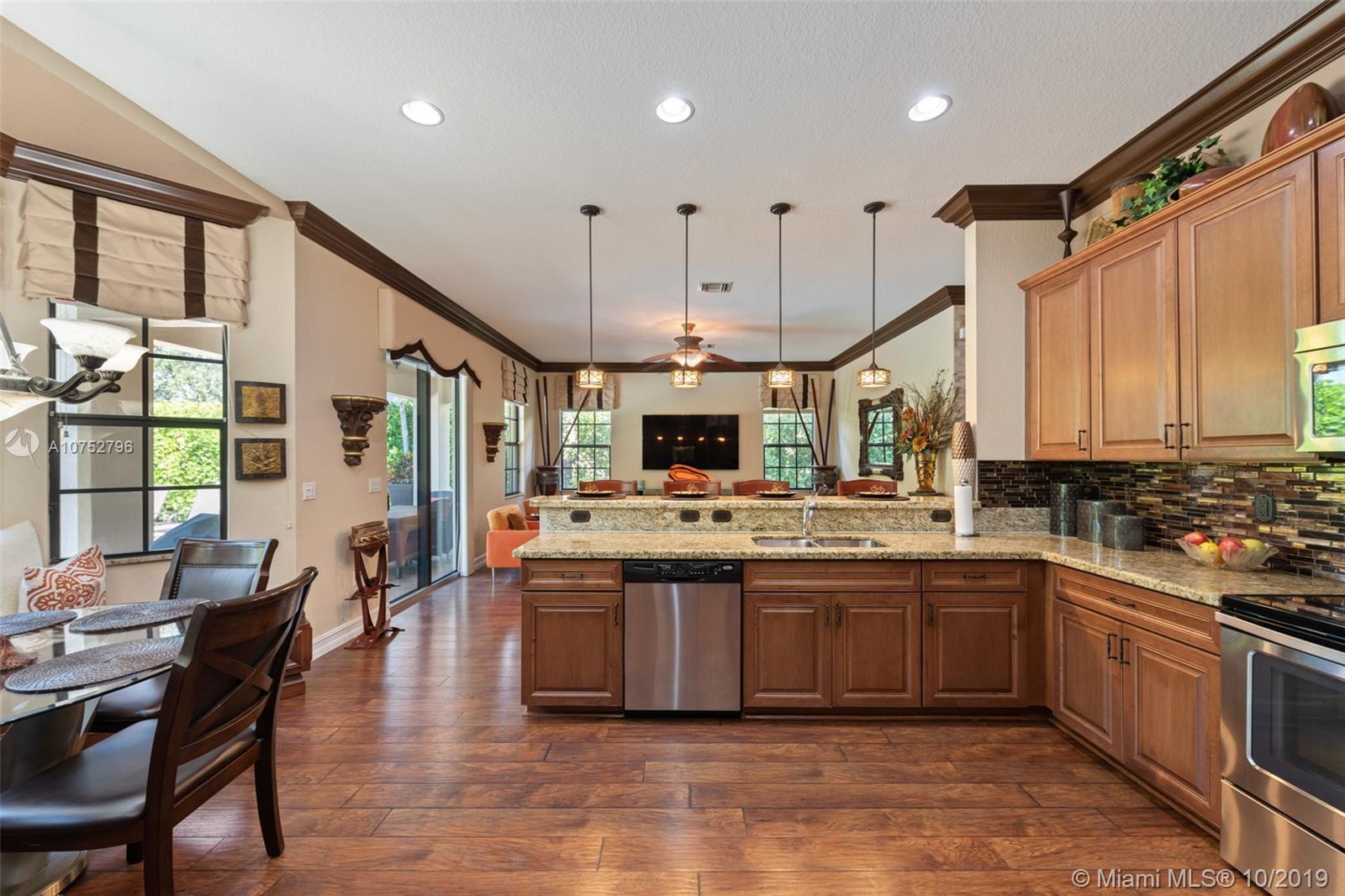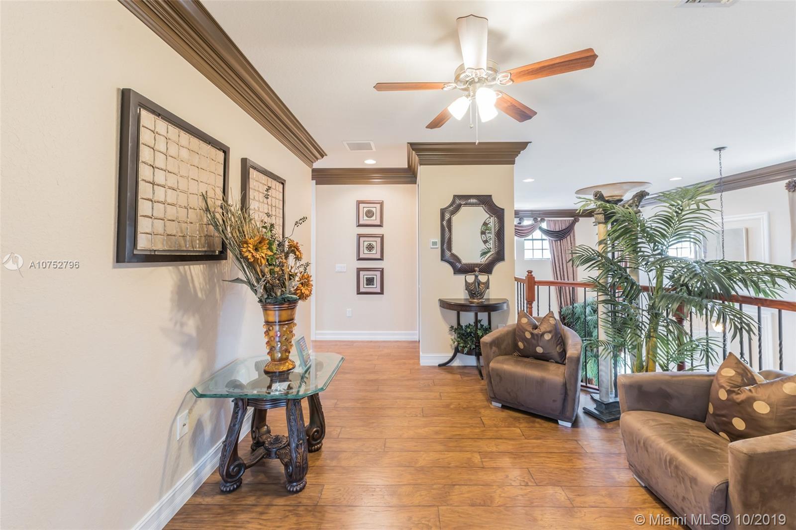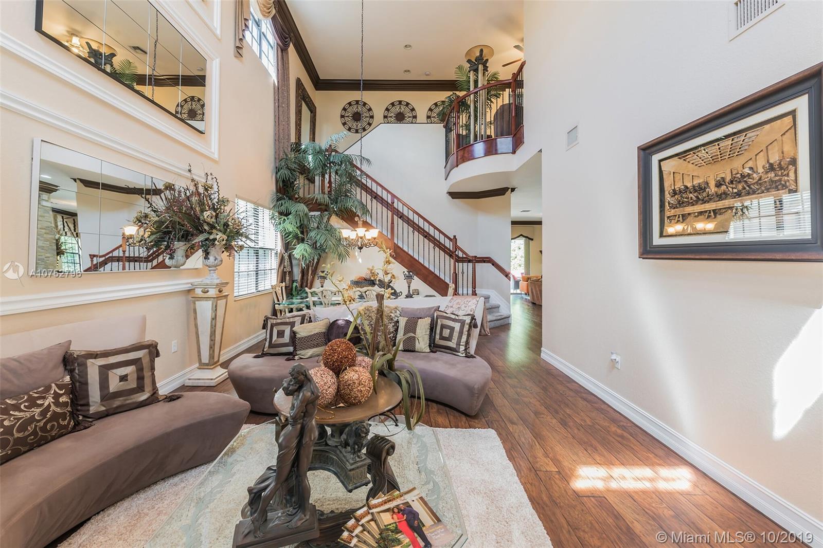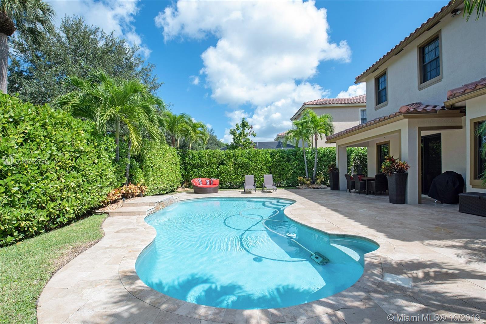 Gorgeous Crystal Model Home, Located in the most desired community in Parkland (Parkland Reserves). Huge kitchen, crown molding throughout, tile wall, wood floors, built out breakfast nook, wrought iron stair railing, plush landscaping, captivating salt water pool with waterfall, travertine patio tiles. One bedroom and full bath on 1st floor, security camera system. Hurricane Impact Windows, Pool and Pool Equipment 3 Years Old, Two AC Units, Upstairs Unit is 12 months old.