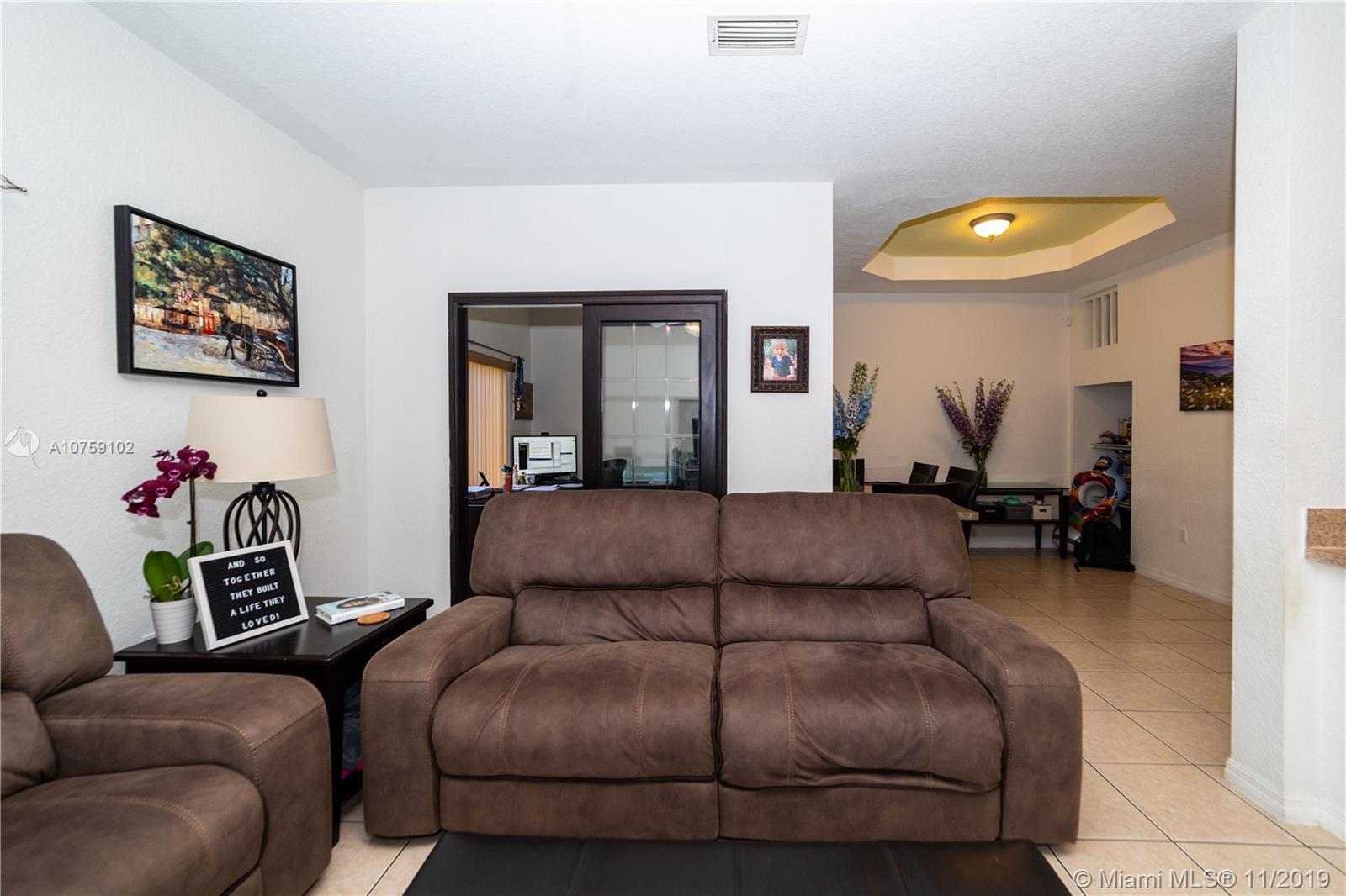 Great opportunity to own this spectacular Townhouse in exclusive Santorini at Vizcaya. This home is excellent for first time buyers, a starting family or Investors. Ample size layout, 3 bedrooms, 2.5 bathrooms and a den that can be used as an office. Updated kitchen with granite counter-tops and fenced patio with pavers, perfect for entertaining. Unit has one car garage with remote access control. Gated and well managed community with 24 hrs security, pool, gym, playgrounds, basketball courts and more. Somerset Charter School located at the entrance of the community. Great location near new shopping, restaurants, schools and activities. Easy access to I-75, the Palmetto and the Turnpike. Investors can rent right away. Excellent ROI.