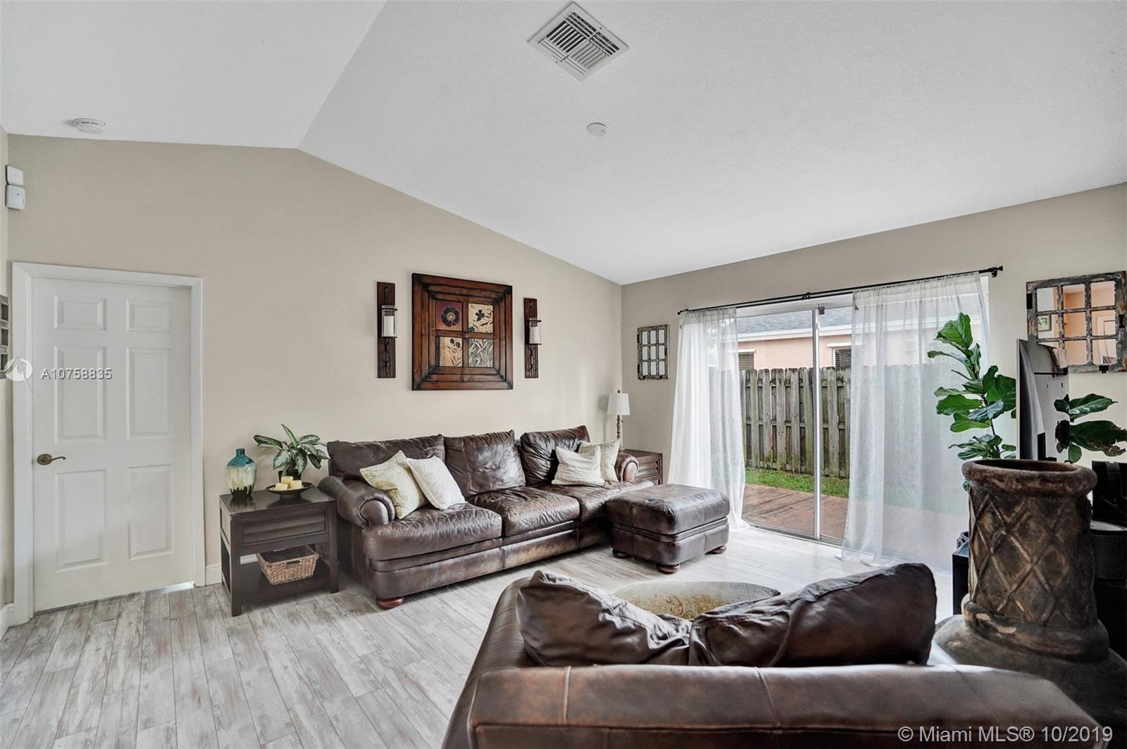 Come and see this home before it is gone! This open has a split plan that is perfect for a family. The living area has a vaulted ceiling that gives an open feeling. A modern laminated floor decorates all through the rooms and living area. The master bedroom is very spacious and the bathroom has been renovated. The second bathroom has been renovated also. The kitchen comes with SS appliances. The backyard has a wooden deck and the yard is completely fenced. There is a community pool with a playground and lots visitor parking.