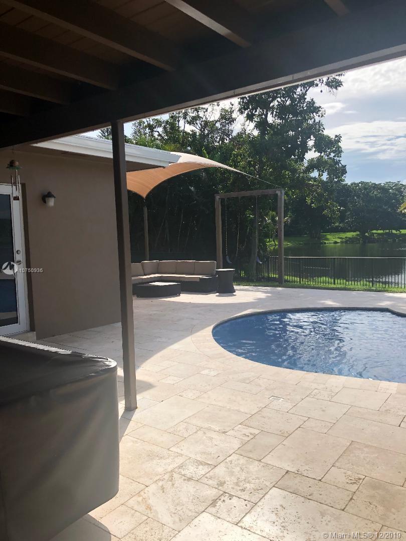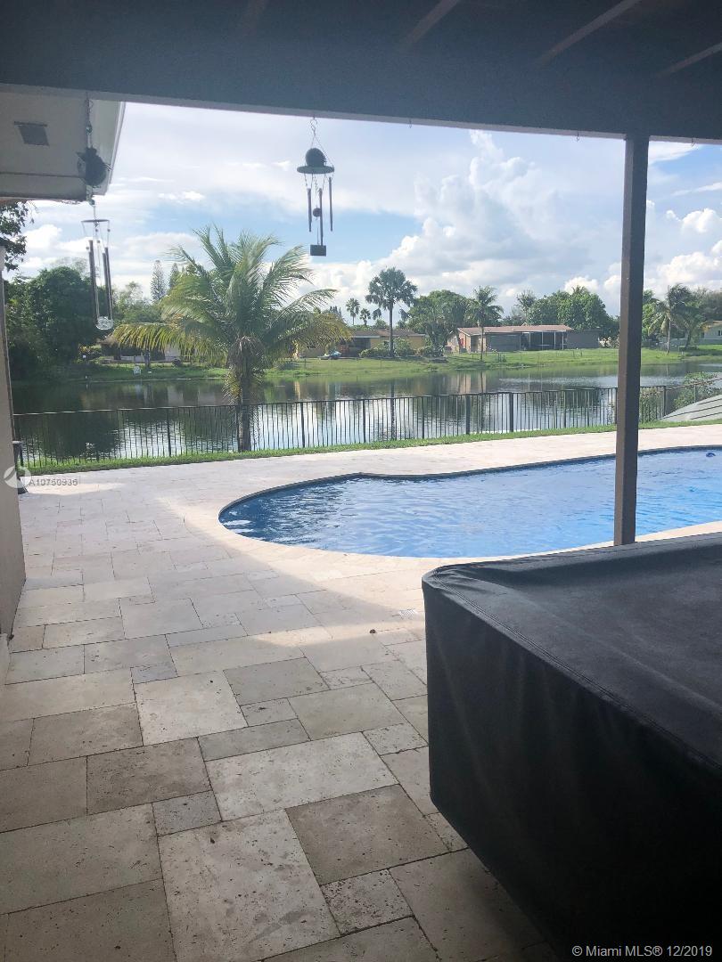 Gorgeous Pembroke Lakes 3/2 home with west view of lake with recently remodeled pool with chlorine salt water system with travertine patio! Home features eat in kitchen with new stainless steel appliances and granite counter-tops as well as updated modern master and guest bathrooms. Recently installed impact hurricane windows and doors, new electrical panel, water heater with new A/C in 2012. Utility area with washer and dryer in 1 car garage as well as a circular drive for extra parking. Home also includes alarm system with security cameras. Original builder flyer lists model with 1816 sq ft of living area exclusive of porch and garage compared to county.
